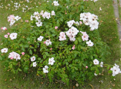オランダの修景バラで、ソフトピンクの一重のかわいい花、微香、こんもりと茂って、花で覆われる。四季咲きもまずまずだし、ローズヒップが付くバラだけど、無理をさせると黒点にかかるのが難点。