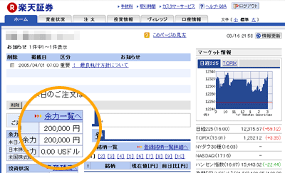 昨日の夕方、楽天証券に振込みしたのが、今日反映されてました。ちょっとドキドキ。ちゃんと20万円入ってるのを確認しました。次はマーケットスピードのダウンロードをしなきゃ!