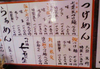 今日は錦糸町のラーメンを 何度か通ってみていた ラーメン屋にやっと行って来ました。 昼前だったのですいていました。 つけ麺のお店で 七菜つけ麺を注文 しっかりしたスープで麺がからみ、しかもダシが効いておいしい。(o^o^o) またタイミングがあえば絶対に行きます。