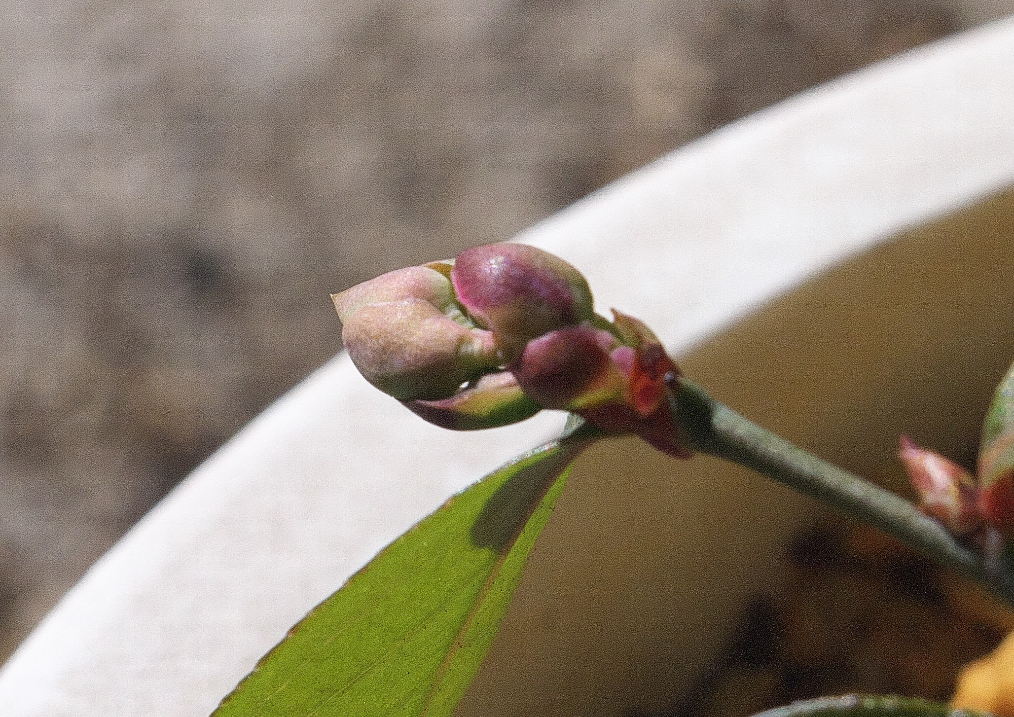 こちらも本来は花芽を摘んでおいたほうが良いのでしょうがホームベル用に花粉を採取したいと思います。そのあと摘み取りますが。