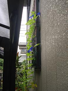 台風8号が沖縄あたりを通過その影響 関東地方も熱い風が吹いています。被害が少ないことを祈ります。こちら例年よりも暑さは穏やかですが今年初めて試した朝顔のグリーンカーテン活躍しています西日が当たる小窓、外はコンクリートの車庫なので鉢に植えた朝顔を這わせて部屋の中から見ると窓の外、狭くて…近くで写真を撮りにくいので別の鉢で育てている青い朝顔を代わりに登場してもらいます。(実は…よく見ると、色は青でも窓に這わせた朝顔には白いフチがあり、種類が違うようです)南側の窓は赤い朝顔(部屋の中からの眺めです)地面に6株くらい植えてあり、育ち過ぎですがカーテン目的なので、これくらい茂っている方が涼しくて近くで見るとゴーヤと比べて朝顔のツルは お互い絡み合うのでちょっと面倒…でも…花が爽やかで綺麗で毎朝 対面するのが楽しみです。