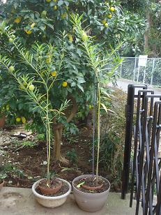 プロ野球日本シリーズの方法にはいろんな声があるようですが千葉ロッテマリーンズ、粘って 優勝させていただきました優勝しないと 西武、日本ハム、ソフトバンクに申し訳なかったと思うので応援する方もホッとしています。 フウセントウワタ鉢植えでもグングン伸びて風が吹くと倒れてしまいそうでした。取り急ぎ 足元は こんな姿に(向こうに見える黄色いハナユの実と大きさが似ています)フウセントウワタの実を近くで見るとトゲは柔らかく手で押さえてみると 弾力がありまさに フウセンを押している感触です。中を覗きたいので 切り取ると切り口から 乳汁がで、中はまだ、綿は完成していません。