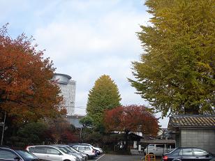 ウォーキング仲間との紅葉狩り昨日は都営地下鉄を白山駅で降りて白山神社のイチョウを見て(奥に見えるのは東洋大学のビル右下の屋根にはイチョウの落ち葉が溜まっています)小石川植物園へ。 7月23日に燭台大蒟蒻(ショクダイオオコンニャク)の花を見ようと駆けつけたら、大混雑で入園を断られた、あの小石川植物園です。昨日は入園入り口で「ショクダイオオコンニャクは 今 どこに?」と尋ねると「研究用の温室に入れてあるので、お見せできません」とまた断られ…紅葉狩りを楽しもうと歩いていると こんな看板が杜仲茶になる「トチュウ」の木でした。(黄色い葉は別の植物。向こうに見える緑の葉がトチュウの葉です)東京大学の植物研究施設である小石川植物園ニュートンのリンゴの木とかメンデルのブドウの木とか面白い植物がいろいろあります。悲しい事に、国立大学の研究費が足りないようです。トイレは古くて、しかも電灯は入り口にしかなくて 個室に入ると暗かった。外国から来た人が見たら幻滅するような有様。園内の地図が載ったパンフレットには「温室を改築する費用を寄付して下さる方は…」と書かれていました。日本庭園は綺麗に手入れされていてこの植物園の中に江戸時代の小石川養生所があったとかで養生所の井戸の跡がありましたが写真撮るのを忘れました。小石川植物園の後は徳川家康の生母が祀られているという伝通院へこれが 生母 お大の方と御供?3人並んだ石像がありました。伝通院は予算が豊富?綺麗な新しいビルもあり、山門のビルも建築中でした。あとは、文京シビックセンターまで歩いて25階の展望台に急いで立ち寄り小石川後楽園の紅葉も見て飯田橋駅からメトロに乗って帰ってきました。