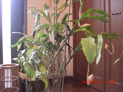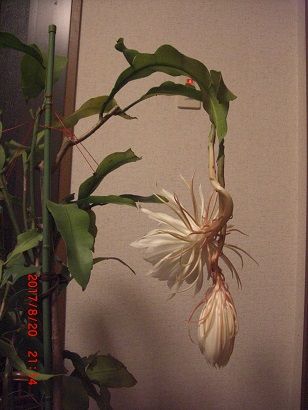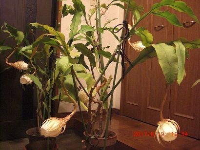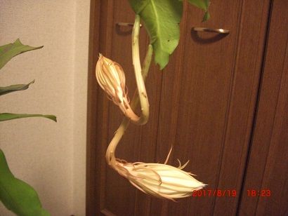 (右が 前日19日に咲き終えて翌朝萎んだ月下美人