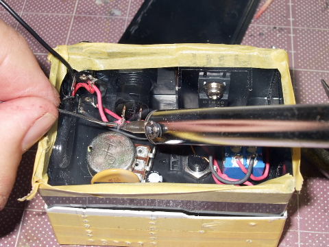 HOパワーパック製作の7回目です。配線が完了しました。凝りもせず、工作ライブ写真です。配線をハンダ付けしているところです。ケースの淵にマスキングテープを貼り付けています。マスキングテープをしていないと、ハンダごてが直接ケースの淵に当たり、ケースを溶かしてしますことがあります。マスキングテープでケースの淵に直接ハンダごてが触れないようにしています。特に狭いところでハンダ付けするときは有効です。お試しください。さらに配線を進めているところです。これはボクの配線の方法ですが、リード線を長めに切り、一端をハンダ付けしてから、リード線の長さを調整してワイヤーストリッパーで被覆をはがし、もう一端をハンダ付けします。配線が完了しました。見た目はあまりよくないですが・・・。テスターを当ててテストしているところです。ACアダプターは高出力大容量の15V3Aのものです。スピード調整は最大にしています。あれ?15Vなのに17.6V出ています。おかしい。まっ、いいか。次回はBトレを使って走行テストをして見ましょう。お楽しみに!したっけね!ポチッとクリックよろしくね!人気Bolgランキングトップページ Bトレ日記 Bトレ掲示板 プロフィール Bトレインの楽しみ Bトレ改造工房 ジオラマ工房 電子工作工房 乗り鉄携帯ムービー館 絵手紙館 DTM作曲館アフィリエイトショップ オークションショップ