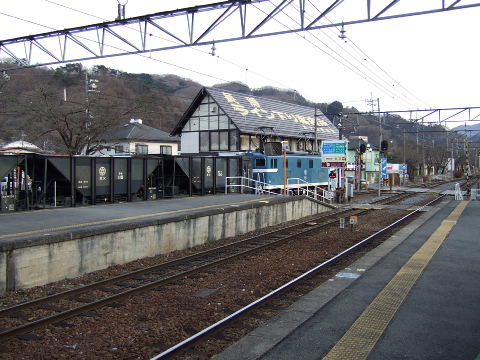 昨日の続きで秩父・長瀞・宝登山の旅その2です。たったこれだけなのに2回に伸ばし、ネタを稼いでしまいました(笑。実は、もう1回予定しています。この長瀞駅、よく貨物を見かけるんですね。行きも帰りも見かけました。バラストを運んでいるようです。機関車はかなり古いもので、形式は何でしょう?詳しくないもので良くわかりません。駅前から結構急でまっすぐな坂を上ると大きな鳥居があり、宝登山神社があります。神社に入らず左に折れ急な坂道を登りやっと宝登山ロープウェイに到着です。案内では宝登山神社まで徒歩10分、宝登山ロープウェイまで15分と書いてありますが、子供連れなら倍の時間を見ておいたほうが良いでしょう。この時間は徒歩ではなくスキップをしたときの時間ですね。車両はもんきー号とばんび号。2台の車両がいったり来たりします。山頂には小さな動物園やレストハウスなんかがありますが、お金のかからない「ろうばい園」に行きました。ろうばいといっても慌てふためいているわけではありません。漢字では「蝋梅」と書きます。1月から2月に黄色い花をつけます。イイ匂いがします。梅とつきますがバラ・サクラ科ではなく、ロウバイ科で別物だそうです。日も暮れてきて夕焼け空になりました。強烈に寒かったですが、澄んだ空気のなかで見る秩父の山々のシルエットと雲の模様がきれいでした。心を洗われます。したっけね!ポチッとクリックよろしくね!人気Bolgランキングトップページ Bトレ日記 Bトレ掲示板 プロフィール Bトレインの楽しみ Bトレ改造工房 ジオラマ工房 電子工作工房 乗り鉄携帯ムービー館 絵手紙館 DTM作曲館アフィリエイトショップ オークションショップ