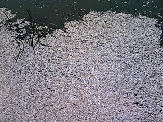 日本人には皆桜好きの遺伝子が組み込まれている?満開の桜が風に吹かれて池一面に広がっていく咲くのも仕事 散るのも仕事 その桜をすくい集めるのも仕事桜も係りの方もお疲れ様!(江戸川区・行船公園 2009-04-08)