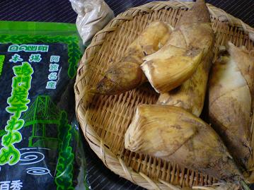 「今年も筍届けましたよ」のメールに胸がいっぱいになる。だって店先やテレビで見るたびに筍好きなのでワクワクしたけどにーさん、病みあがりだから今年は掘りにいけないと思っていたから元気で良かったなと思ってそして覚えてくれてありがとう!でまたジワン…だってさ~バタバタしていてバレンタインデーさえパスしちゃった不肖の私なのに…申し訳ない!と思いつつ、筍に笑顔がこぼれ…春が来た!宅急便が届いてすぐ仕事に出なくてはならずせっかくの筍なのに時を逃しては無念じゃ。「せっかくの掘りたて、むれちゃったら困るから 箱からは出したんだけど…」とお休みで寝坊していたうちのに電話で話すと最後まで言わずとも任せてくれといわんばかりに自分から下茹で担当に立候補してくれた。和食得意だもんね。でも、ほんとは私、筍のあったかい皮剥くの好きだけど、ま、それはあきらめよ♪二人の王子様のおかげでおいしいおいしい筍食べさせていただいてなんて、幸せなんでしょ。私は食べるだけ!のお姫様さしづめ、筍のお姫様だからかぐや姫かもね。フフフ王子たちよ、姫の恩返しを首を長くして待っててね!きりんくらい、揚子江くらい長くなるかもしれないけど…