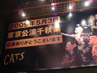 5月3日に五反田のキャッツシアターでの千秋楽を迎える劇団四季のキャッツ。次はみなとみらいに新しいシアターができるそうです。4月30日のマチネ(昼公演)が私の五反田千秋楽でした。今では目をつぶっても行けそうな劇場だけど最初は東急ストアの前の大看板や、通りに貼られたポスターのお世話になりました。ありがとう!五反田のキャッツを支え続けてくれた皆さん!キャッツの中でおばさん猫のジェニエニドッツが華麗なタップを決めた後に言うセリフ「ありがとう!皆さん」のようにありがとう!五反田!!