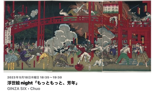 design++dalu++■浮世絵night「もっともっと、芳年」■日時:2023年5月18日(木)受付開始/18:00 開演/18:35 終演/19:30■会場:GINZA SIX 11F GINZA XI LOUNGE皐月の浮世絵nightは、引き続き月岡芳年を特集いたします。幕末から明治にかけて活躍し、「最後の浮世絵師」と呼ばれる芳年。大きな時代の変化とともにある芳年の作品は、他にはない迫力で見る者を惹きつけてやみません。一つ一つの作品にじっくりと迫り、その魅力を紐解きます。