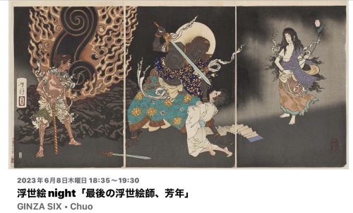 design++dalu++■浮世絵night「いよいよ!芳年」■日時:2023年6月8日(木)受付開始/18:00 開演/18:35 終演/19:30■会場:GINZA SIX 11F GINZA XI LOUNGE水無月の浮世絵nightは、さらに月岡芳年を特集いたします。幕末から明治にかけて活躍し、「最後の浮世絵師」と呼ばれる芳年。変わりゆく時代のなか、さまざまな浮世絵を描いてきた彼がたどり着いたのは、どのような境地なのでしょう。今回は晩年の名作たちを中心に、じっくりとお話しします。