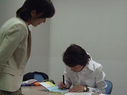 ・府中ツタヤさま 売り切れ注文待ち・府中 啓文堂さま ラスト1冊(買わずにおいてきた)・私んちの100冊 もう在庫切れそして!新宿紀伊国屋書店様 幻冬舎さんあてに30冊追加注文!みんなで伊勢丹にお買い物にって、カブキ町で遊んで?帰りに紀伊国屋書店さんで「聴くの本」を買って帰りましょー! ちなみに、多摩センター啓文堂さんでいっぱい残ってるらしい!多摩センターへ急げー!ピューロランド、パルテノン多摩ペンタくん、なんでもいいや、連休は多摩センターへ行きましょ!以下、小田美奈子さんに著作者サインを頼まれて、会場の方にウォーターマンの万年筆をお借りして「震えながら」「楷書体」のサインならぬ「記名」をした私。笑ってやってください。そして、アンドシーズセミナーお客様がたくさんお買い上げいただいた中の1冊を持って記念撮影!左端には 島田昭彦さん。