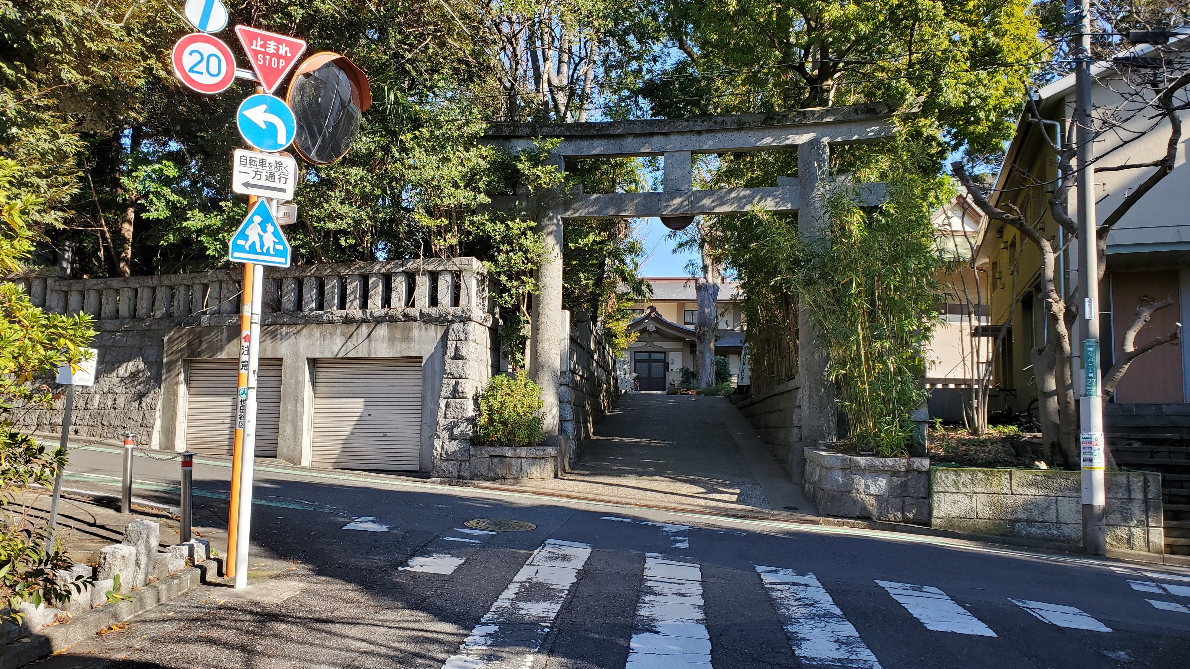 今年の初散歩をした昨日……頬をなでる風はちょっぴり冷たかったけれど、何と言っても青空は気分が良かった。 目黒通りは使わず、八雲や深沢を抜けて上野毛通り……ブックオフの隣へ… 中町天祖神社……社号碑には[天祖神社]としか書かれていまないので正しいかは不案内ですが、他所と区別するため一応中町を付けました。 神仏分離の明治時代、全国にあった伊勢の内・外宮の神を祀った「神明社」あるいは「神明宮」と称した神社が「天祖神社」へ改称されました。宮の称号を一般の神社が使うことが禁止になったのが一番の要因でしょうが、だからどこへ行っても天祖神社なんですね。 一之鳥居……何度も前を通りましたが、目的地ではなかったし、寄り道するには奥深そうなのでスルーしていた私です。昨年暮れに訪問した等々力不動尊が満願寺の別院と知り、そこを目指すついでに今回ちょっとだけ遠回りのルートに入れてみました。 参道の並木はイチョウとケヤキみたいですが、この季節は寂しいです。春になったら撮り直しに行こうかしら? 真っすぐな参道を進むと、左手に手水舎…… 参道の並木が終わる所で狛犬と二之鳥居がお出迎え……珠持ちと子持ちで阿吽の狛犬でした。 鳥居をくぐって左に神楽殿……比較的新しそう… 社殿……取りあえず新年の御挨拶……連れ合いに貰ったお賽銭がま口が活躍。 社殿左わき……完全に木造です。 境内社……社殿左に鎮座していました。 石碑には[阿夫利神社(左)][日枝神社(右)]と彫られています。 石のようなものが3つ…… よく見ると上に[弁財天]……[阿夫利神社][日枝神社]と共に合祀されたので、石みたいなのも3つあるのだろうと勝手に推測しました。 境内社右にありましたが、たぶん力石でしょう。毎度のことながら「徹」ではありません。しかし、これを持ち上げた人がいたのでしょうか? 私には絶対に無理……ぎっくり腰になること請け合い…… 社殿前は広々としています。 社務所と右方向が参道……落ち葉などなく手入れが行き届いていたのですが、常駐する神職はおられないみたい。兼務している等々力玉川神社にもお寄りしました。 神輿蔵かしら? 西に向いた鳥居から失礼することに…… 天祖神社の別当寺「金剛寺」に向かう途中で来た方をふり返りました。 フォルクスの駐車場……ず~っと前に、ダブテンを食べに連れ合いと散歩で行った店。ダブテンって何?って……ダブルテンダーロインステーキの略です。二十歳ぐらいの時「ダブテン食べさせてやる」と言う父に連れられて碑文谷ダイエーのフォルクスで初めてお目にかかりました。なぜか気に入っていて通ったらしい父が勝手に命名したダブテン……大阪上新庄や都心でも立ち寄ったことがありますが、フォルクスはこの店が最後でした。従って、今でもダブテンがあるかは不明です。 昨日は「なんで~」と、車には興味のない連れ合い……今日は写真載せましたよ~ 息切れこそしなかったものの、確実に脚力が減退しています。今朝も行きがけは良かったのですが、モーニングの帰りは少々足が重かった私……日に日に老いていくみたいですが頑張って散歩するとしましょう。