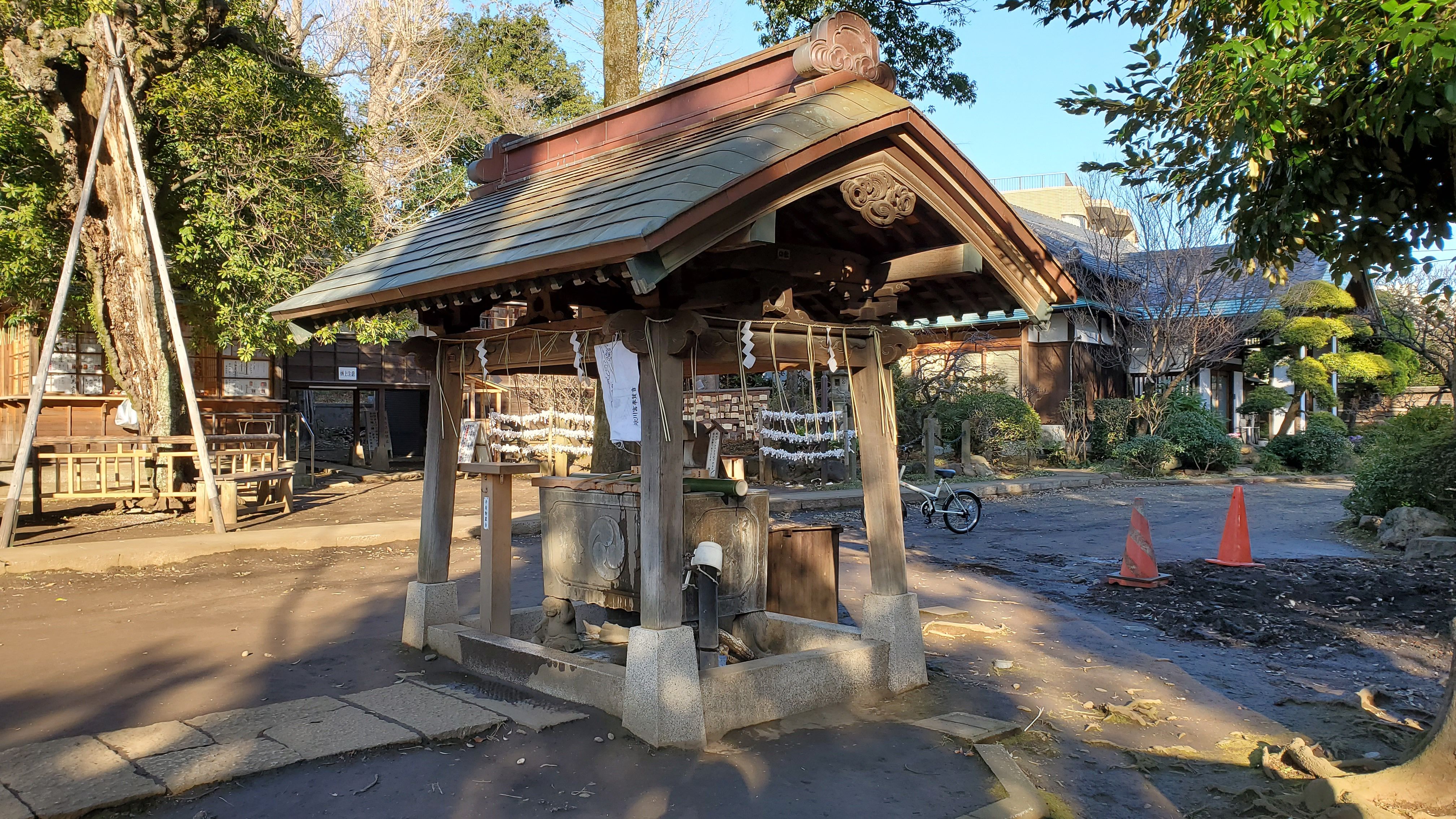 1月9日……世田谷中町や等々力をブラブラして帰ってきました。 お隣の金蔵院にお寄りしたのに、こちら(八雲氷川)にご挨拶をしないのは失礼だと拝殿に手を合わせてから、前回撮り忘れた手水舎だけパチリ……何でかって? 安政6年(1859年)の奉納らしいですが、数日後(1月14日)に訪問した矢口今泉神社手水舎にも同じ姿をみました。当時の流行りだったのか? 水盤の底を持ち上げている力持ち…… よいしょ…… こらしょ…… どっこいしょ……[がまんさま]なんて呼ばれて親しまれたようですが、水盤を支える力持ち達……辛そうですが日々お疲れ様です。 表通り商店街に出て、帰宅態勢の私……喫茶店らしきを見つけてドアを押し「こちらはタバコ吸えますか?」と尋ねたら、「すみません、うちは喫茶店ではなくコーヒー豆を売る店です」ですって……[珈琲店]って書いてあったから勘違いをした私でした。恥ずかしい~ でも入り口の風情は喫茶店だったんだけどな~ 商店街の通りに、東光寺参道入り口があります。これは以前[東光寺]にお参りした際に撮りましたっけ…… 常圓寺参道入り口……東光寺の入り口は前回見ていたのですが、なぜかこちらは気付きませんでした。ついこのあいだのように思えますが[常圓寺]や東光寺は去年の6月でした。《おまけ》 切られた桜の切株ですが、抜根作業が終わった後の昨日、一応埋め直されてアスファルト補修が済みました。三角コーンが置いてあるってことは、まだ補修作業が終了したわけではないのでしょうか? ということで、1月9日の散歩日記は今日で完了しました。次回からは14日の大田区散歩……気まぐれなのであっちこっち……品川も行きたいところが残ってるんだけど、今日は寒いからだめです。霙(みぞれ)が降ってきても不思議じゃないから大人しくしています。 そうそう、今日の西小山はガラガラでした。行った時にお客さんは一人だけ。「寒いからみんな出てこないんでしょう」とマスター。贅沢してオムライスを食べてしまいました。お腹いっぱいだから昼抜きで大丈夫。休肝日だから晩御飯は簡単に……狐どん兵衛でいいや~