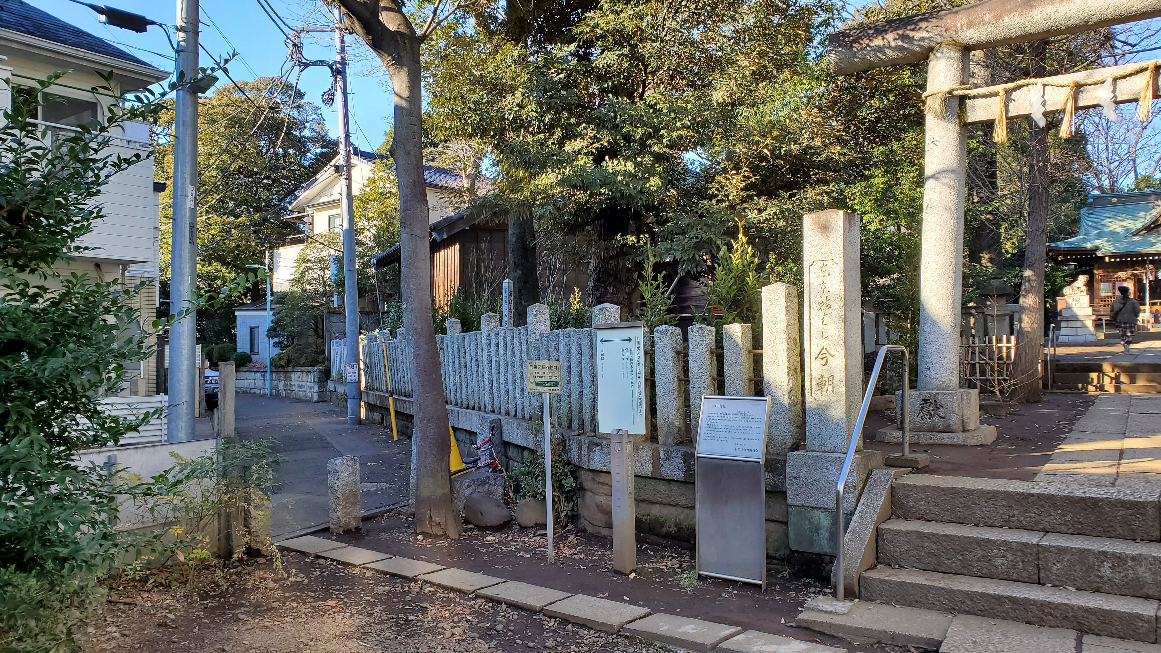1月14日……いつものように思い付きの散歩… 矢口の新田神社を後にこんな道……新田神社の東南、直線距離にしたら100m~200mでしょうか? 目と鼻の先に…… 一応玉垣に囲まれてはいても氷川児童遊園の片隅を借りるように…… 氷川神社……参道は真南に向いています。訪問時にはまったく気付いていませんでしたが、この日初めにお邪魔した新田神社と縁がある神社でした。左側大半が児童遊園で……誰も遊んでいませんが…… 社号碑は[氷川神社]ですが、他所と区別するためにタイトルは矢口氷川神社としました。樹木は、楠(クスノキ)で、区の指定保存樹みたいです。 入口左側の手水舎は、現在は使われていないみたいです。 掃除が行き届いています。参拝する方の姿は伺えませんでしたが、地元の氏神様として近隣の方々のご助力があるはずです。新田神社とは規模が違いますが、大切に守られてきたことでしょう。 なかなかお目に掛かれない風情の狛犬…… 嘉永2年(1849年)の奉納……石造りだけに焼失を免れたのか? 氷川神社社殿……素戔嗚尊(すさのおのみこと) 昨日書いたように、空襲によって焼失した新田神社とこの氷川神社は昭和33年(1958年)に再建されたものです。社務所もないので、おそらく新田神社が兼務しているのでしょう。 社殿扁額…… もとの姿と比較してどうかは不明ですが、簡素ながらしっかりと再建されました。 老朽化したとされる神輿庫があったのは、こちらあたりでしょうか? 社殿前の赤い幟は[多摩川七福神]でした。「大黒天」は、社殿内におられるのでしょう……お姿は拝見できませんでした。 新田神社に置かれている神輿と山車……もともとは氷川神社のなんだけどな~ 社殿右の境内社は立ち入り禁止…… 稲荷社鎮座記念……昭和47年(1972年)に鎮座 三社稲荷……鉄格子の隙間からパチリ……きっと正月や例大祭にしか直接拝見できないのでしょう。 三社稲荷扁額…… 社殿前から鳥居……この参道、本当に真南に向かっています。 由緒は不明ですが、規模の違う近くの新田神社が気遣いをするのだから、こちらのほうが創建は早かったのでしょう。 と言うことで今日はこれでお終い…… 留守番をするか? コピット散歩に行くか?