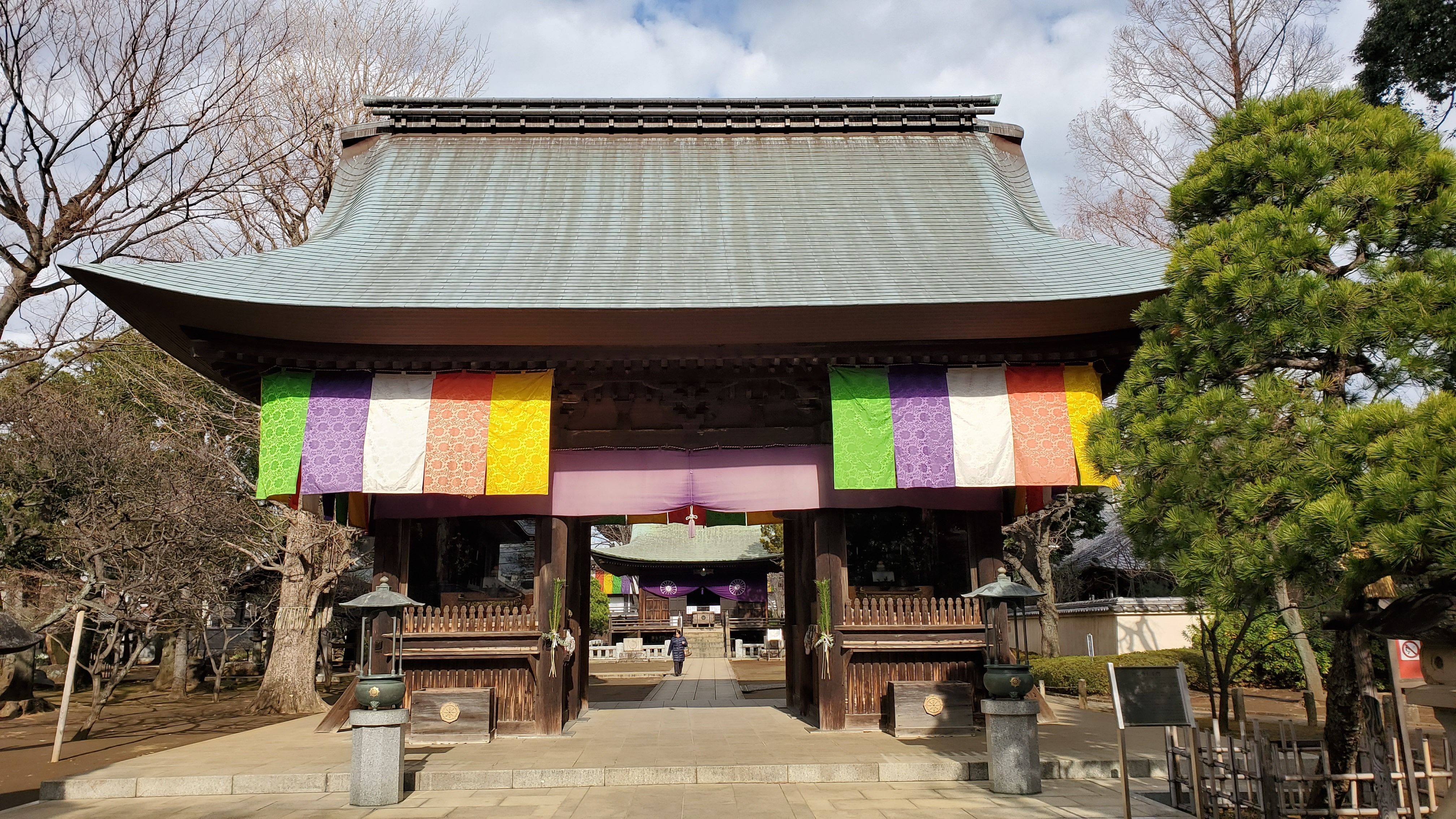 1月9日……世田谷区中町-等々力を歩いてから寄りました。 八雲氷川神社には以前(2019.6.2)来たのですが、なぜかお隣をスルーしたので…… 氷川神社の拝殿前 三之鳥居を左に…… とてもコンパクトなお寺です……ワンブロック左の[みどりの散歩道 呑川・柿の木坂コース]は歩きましたが、こちらへは訪れたことがありませんでした。 山門脇は梅の木でしょう。来月になったらもう一度行ってみましょうかしら? 氷川山虎空蔵寺金蔵院(ひかわさん こくぞうじ こんぞういん)……垣根も山門もないこの風情。わずかな石段を上って失礼します…… 真言宗智山派……よりすぐんだ分けではなく、この日に訪れた三寺が同宗派であり、玉川八十八ヶ所霊場(第五十三番札所)であったことは誠に見事な偶然でした。 歓喜天(かんぎてん)堂(手前)と本堂(奥)…… 無縁供養地蔵……石段を上がった脇にひっそりと……『氷川神社の地蔵さんが導いて八雲の宅地一帯に埋もれている無縁仏の供養と地の神の供養をしてほしいとの夢を見て奉納』とありました。 歓喜天堂内……『歓喜天は梵名をナンデイケーシュヴァラといい、歓喜自在天・難提自在天・大聖歓喜天と訳されています。一般には……諸願をかなえる力も強いけれど、反面、約束を守らなかったりすると、大変恐ろしいといわれている天部の尊です。(高野山霊宝館より)』……約束は守らないといけません。説明責任とは口ばかりの政治家さんたちは恐ろしい目にあうかもしれません。『歓喜天の姿は、頭部が象の形であらわされ、いわゆる象頭(ぞうとう)人身の姿をしています。その姿には大きく分けて単身像のものと、双身歓喜天として二尊が抱きあう姿のものがあります。(同館)』……象頭人身とは、怒らせたらさぞや怖いことでしょう。やっぱり約束は守ること、あるいは初めから約束などしないことでしょう。 南無大師遍照金剛……歓喜天堂脇にお立ちでした。『南無とは、敬意や尊敬を表すサンスクリット語の「ナモ」を音写した仏教用語であり帰依するという意味があります。大師とは偉大なる師を意味し、真言宗の開祖である弘法大師・空海のことを指します。遍照金剛は弘法大師が唐に渡り密教を学んでいた時に付けられた灌頂名(かんじょうめい)です。(㈱滝本仏光堂より)』 本堂に進む時、弘法大師様がお出迎えしてくれます。 金蔵院本堂……慶長5年(1600年)頃に頼栄上人によって創建されたと伝えられ、古い記録としては享保年間(1716年~1736年)に俊海法師が本堂を立て直したことが残っていると……失礼ながら、見かけ以上になかなか歴史のあるお寺でした。 本堂に安置されている、本尊の大日如来像と脇侍の「木造不動明王および両童子立像」は区指定有形文化財。不動明王像の頭部内から発見された11枚の文書によると、像の作者は不明ながら、応仁2年(1468年)に大和国山辺群・広瀬群のあたりで造立されたことと、目的が明らかになったと、目黒区教委の説明看板にありました。どうせなら造立の目的も書いておいてくださいませ。しかし500年以上前の仏像は貴重です。 コンパクトですが、丹念に作られていました。 本堂前から山門に向かって……と言っても、門はないんだけど…… 水子地蔵でしょう。とても悲しい気持ち…… 境内……明治4年(1871年)、境内の建物を使用して学校が創立されました。後の区立八雲小学校(八雲小学校としての創立は明治7年)で、区内で一番古い小学校誕生の地だそうです。『遍照金剛には「太陽のような明るい光を照らす慈悲と、人を幸せにする仏さまのような砕けることのない知慧の持ち主」という意味があり、大日如来の別名でもあります。(㈱滝本仏光堂より)』 ということで後ろ姿に一礼して家路についた私でありました。《おまけ》 昨日しばらくぶりに前を通ったら、こんな姿に変わっていました。以前はラクサとか言うお店だったけど、やっぱり長続きさせるのは難しいのでしょう。隣のヒグマ・ドーナツは頑張ってるんだけどな~ 金谷丸……「黄金アジフライ」だって……イカフライだったら絶対に行くんだけどな~ どうぞ長続きしますように……