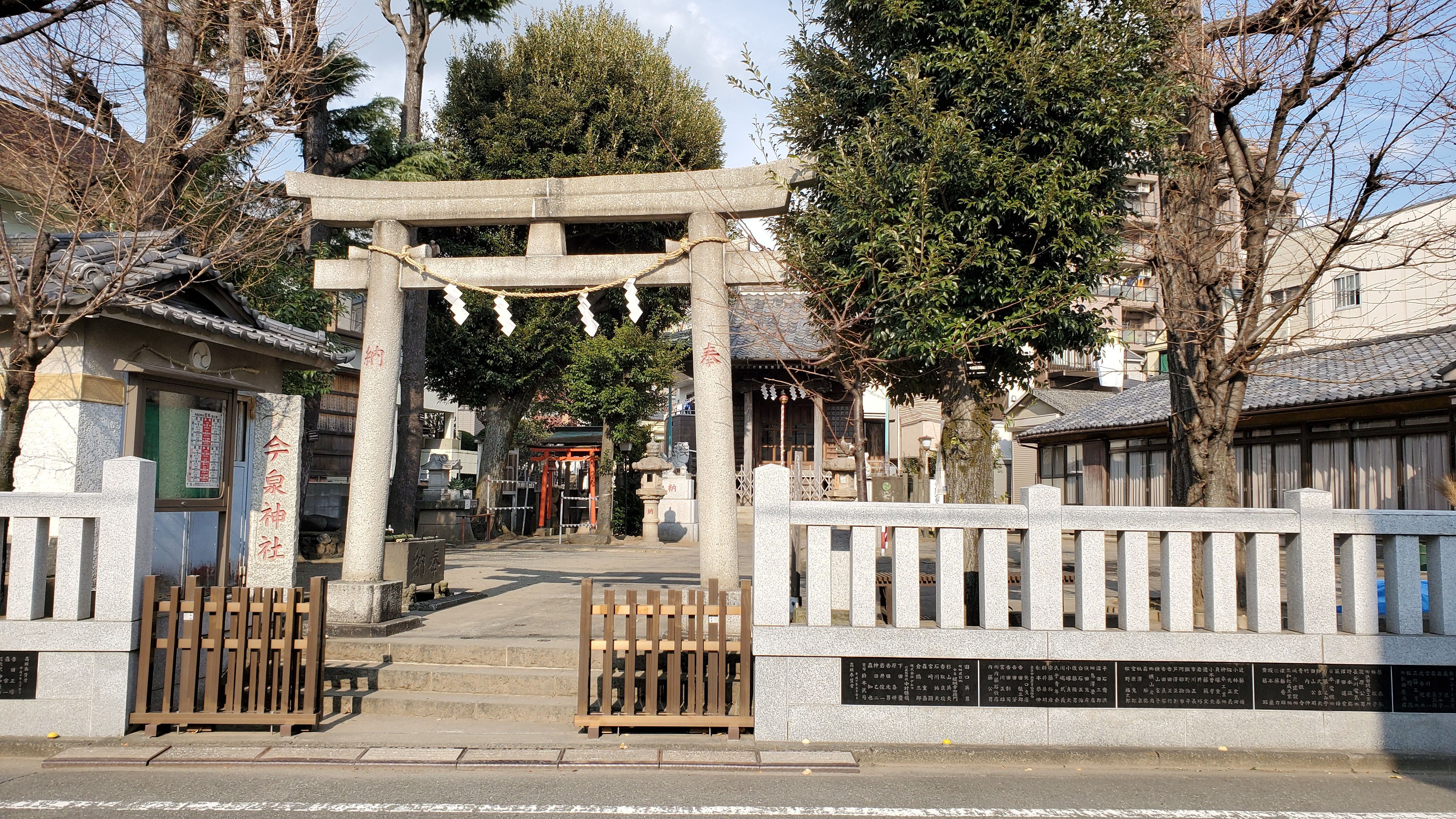 1月14日……新田神社-氷川神社に続いてここにも神社……とにかく密集しています。花光院のお隣ですから、別当寺だったのでしょう。 池上本門寺を中心に日蓮宗寺院が取り囲み、玉川八十八ヶ所霊場に名を連ねる真言宗寺院、その他浄土真宗寺院などなど100数十の寺院が大田区には存在するようですから、寺社合わせれば優に200を越えることでしょう。 今泉神社鳥居……現在の住所は大田区矢口ですが、昔々は今泉村だったのでしょう。 小さいながらも立派な社号碑です。 手水舎……いらっしゃいました[がまんさま] 八雲氷川神社は四か所を担いでいましたが、こちらは前面だけでした。ひょっとしたら二体 壊れたのかもしれません。慶応元年(1865年)から支えているんだからくたびれるわな~ ご苦労様です。 右に社殿、左に境内社……氏子さんのご協力のたまものでしょう。掃除が行き届いていました。 力石……『…宝永年代ヨリ土地老若氏子ガ祭礼の時体位向上心身練磨ニ供用セル石ナリ…』と、石碑に書かれていました。錬磨?練磨?……私に足りないものです。 社殿左側に二つ…… 手前には鳥居がありませんが、稲荷神社なのでしょう。 正面に堂々と鎮座していました。 稲荷神社……気を付けないと頭をぶつけそうです。稲荷神社だけど、狛犬も守っています。 御祭神は宇迦之御魂神(うかのみたまのかみ)……日本書紀では倉稲魂命……先日も書いたっけ… 味わいのある狛犬…… こっちはちょいと怖いかも…… 今泉神社社殿……御祭神は誉田別命(ほんだわけのみこと)……日本書紀における応仁天皇の呼び名 社殿扁額……すっきりした字体… 社務所玄関は新しそうなので、神職の方もおいでになるのでしょう。 しかし、秋の祭礼はどうしてるのか? 新田神社、氷川神社と今泉神社が同一日にならないように調整しているかもしれません。近隣の子どもたちには嬉しいです。縁日 三回楽しめますものね~ と言うことで、今日はこれでお終い…… 明日は歯医者 嫌だな~ マイクロエンド…それほど痛くはないけど口を開けてるのが辛いんだよね~ 電車止まらないでね~ 雪は困るよ~