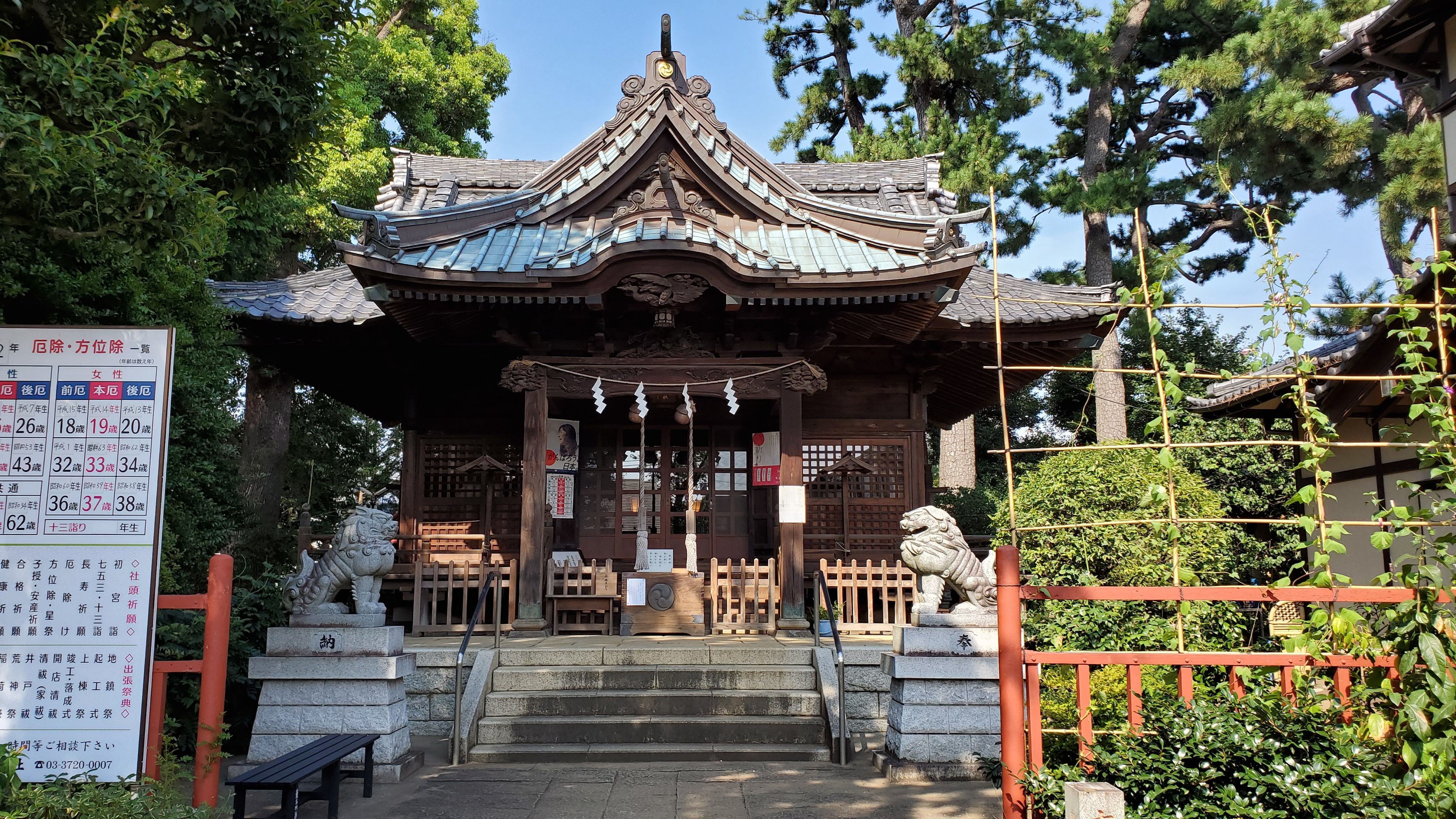気が向くと東へ西へ……8月17日 雪谷大塚児童中央公園……鵜木大塚古墳の近く 住居表示は「雪谷大塚町」なんだけど、最寄りの駅名は「雪が谷大塚」……「が」を入れるか入れないか? いつどうなったのかしらね。 お洒落な造りだと感心していたら……「れんげ研究所」……だって。「れんげ」だけど「生レモン」を主成分にした「れんげ化粧水」ってのを製造販売しているらしい。大正12年生まれの化粧水なんだって。ちなみに、こちらは本社ではなく営業本部みたいです。知ってたら連れ合いへのお土産に買って帰ったんだけどな~ 左が世田谷区で右は大田区。また区界を歩きました。ちょっとだけだけど…… 自由通り……奥沢までこの通りの左右をウロウロ…… 完璧に世田谷区に入りました。道沿いについて行けば、自由が丘を経由して駒沢公園……連れ合いも迷子にならずに歩けるでしょう。 東玉川交番…… 真横に神社……賽銭泥棒の抑止効果があるかもしれない。 東玉川神社参道入り口……お巡りさんのチャリンコ駐輪中。電動アシストにしてあげればいいのに。 当神社の拝殿・本殿は、渋谷区本町の氷川神社から移築されたと…… 社殿へと続く参道…… 社殿修復落成記念碑……平成11年(1999年)11月吉日 世田谷区教委の立て看板に『……(社殿)向拝の天井板には、弘化2年(1845年)満遷による「火焔龍神像」が水墨で描かれています……』とありました。ちゃんと読んでから参拝したので拝見しましたが、ここに彫られているのは模写でしょう。 この辺りは住宅に挟まれています。 ここで左を見たら…… 一気に開けて、神楽殿や駐車場…… 右には手水舎……竹筒からチョロチョロと水が流れていました。 社殿右に社務所…… 東玉川神社社殿……渋谷氷川神社が社殿の建替えをしたので、譲り受けることができた社殿。ちなみに、この社殿は慶長~寛永時代、1600年代前半に建てられたものらしい。戦禍を逃れてよかった。 続きはまた……《おまけ》 今日の空……9時18分 暑くなりそうだと思ったら、やっぱり暑い。渋谷氷川神社に行こうか迷っているけど無理だわな~