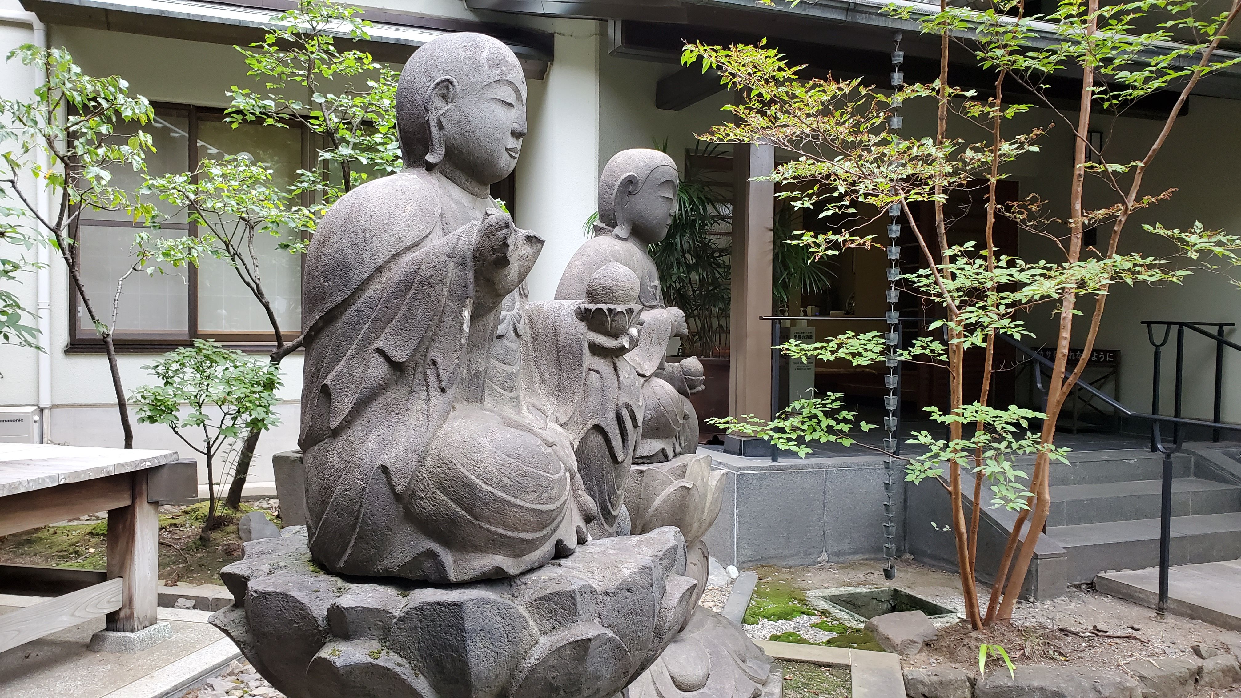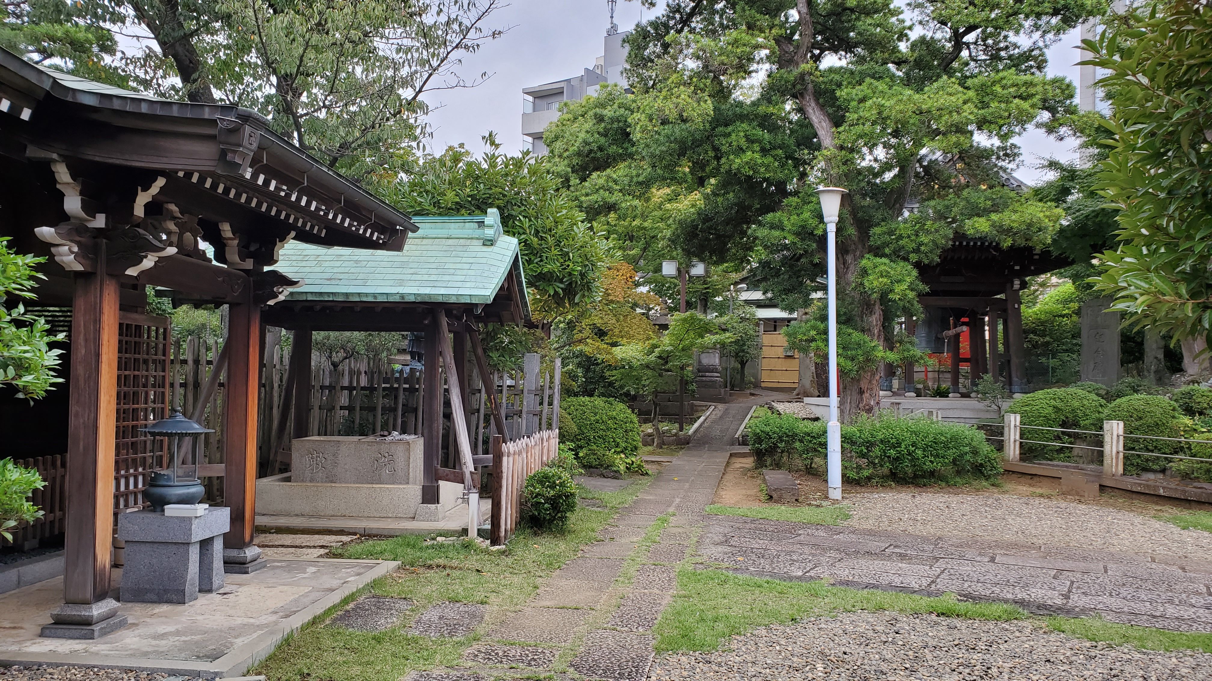 9月22日のブラブラ……もう一ヶ月も経ってしまいました。日々早いです。 渋谷氷川神社を出て国学院大学交差点……正面は博物館を有する学術メディアセンターだって。 道路を隔てた3号館へは渡り廊下で繋がっていました。雨の日には良いです。「瀧川政次郎像」と「顕彰碑」……先生のお名前は「まさじろう」と読むそうです。メディアセンターの前に……「令和元年7月移設」とあります。世田谷の松陰神社から移設されたようですが、同神社を訪問した際は気付きませんでした。墓地にでも置かれていたのかしら? 國學院大學に挟まれた道を北東に少しすすむと「吸江寺」……「きゅうこうじ」とお読みするそうな。 本堂にまっすぐ伸びる参道…… 蓮の鉢が置かれていましたが、葉はまだ枯れ落ちることなく健在。 普光山 吸江寺 本堂…… 当初は、板倉周防守重宗の奥さん(法名 玉樹院寶林清月・寛文8年[1668年]没)が麻布櫻田に草庵を購入し、慶安3年(1650年)、深く帰依していた石潭良全(せきたんりょうぜん・と読むのか?)によって開山。当地への移転時期は「元禄14年(1701年)」と「宝永3年(1706年)」と二通りあるらしい。 同寺では、石潭良全和尚(延宝8年1680年寂)の追善法要も行われているそうです。 本堂扁額……『…創建時代、剣術に秀でた開山和尚のもとに多くの門下生が剣術と禅について学びに来られていました。現代でも受け継がれえている「無外流」という剣の一派は吸江寺から生まれたともされています。(同寺HPより)』 剣客商売・秋山小兵衛親子も無外流だったかしら? 臨済宗妙心寺派だそうです。私の散歩でもお見かけする機会の少ない臨済宗寺院は、大名や武家に好まれたそうなので私ら庶民には縁遠い宗旨なのかもしれません。 でもって初耳でしたが「京都」(妙心寺・南禅寺・東福寺・大徳寺・天竜寺・相国寺・建仁寺)・「鎌倉」(建長寺・円覚寺)・「浜松」(方広寺)・「滋賀」(永源寺)・「山梨」(向嶽寺)・「広島」(佛通寺)・「富山」(国泰寺)の14派(本山)に分かれているそうです。大本山妙心寺からなる妙心寺派寺院が最大とのことでした。 禅宗寺院では、曹洞宗のほうが多くお目にかかります。黄檗宗は一寺だけだったかも…… 御本尊は「観音菩薩坐像」で、「達磨大師坐像」と「伽藍神倚像」が脇を固めていると。区指定有形文化財 本堂前から参道……明和6年(1769年)在銘の鐘と、鎮守英彦山大権現社は失われてしまったと。 赤い灰皿ありました。ありがとうございました 鐘楼の向かい側に…… 見かけない境内社だと思ったんだけど…… さりげなく手水盤……寺紋か? 奉納された方の家紋か? 子育地蔵尊……何体か並んでいました。 西方地蔵・賽の河原地蔵尊……読めません。連れ合いが読んでくれるでしょう。 五所川原に川倉賽の河原地蔵尊ってのがあるらしい……今度、青森の社長に会ったら聞いてみよう。 ボチボチ失礼します…… 見上げると國學院大學……「吸江寺」(きゅうこうじ)……めずらしい名前のお寺にお邪魔しました。《おまけ》 昨日販売開始のプレミアピーチ。モーニングの帰りに行きつけのセブンイレブンでもらってきました。無料はありがたい……ありがとう!!