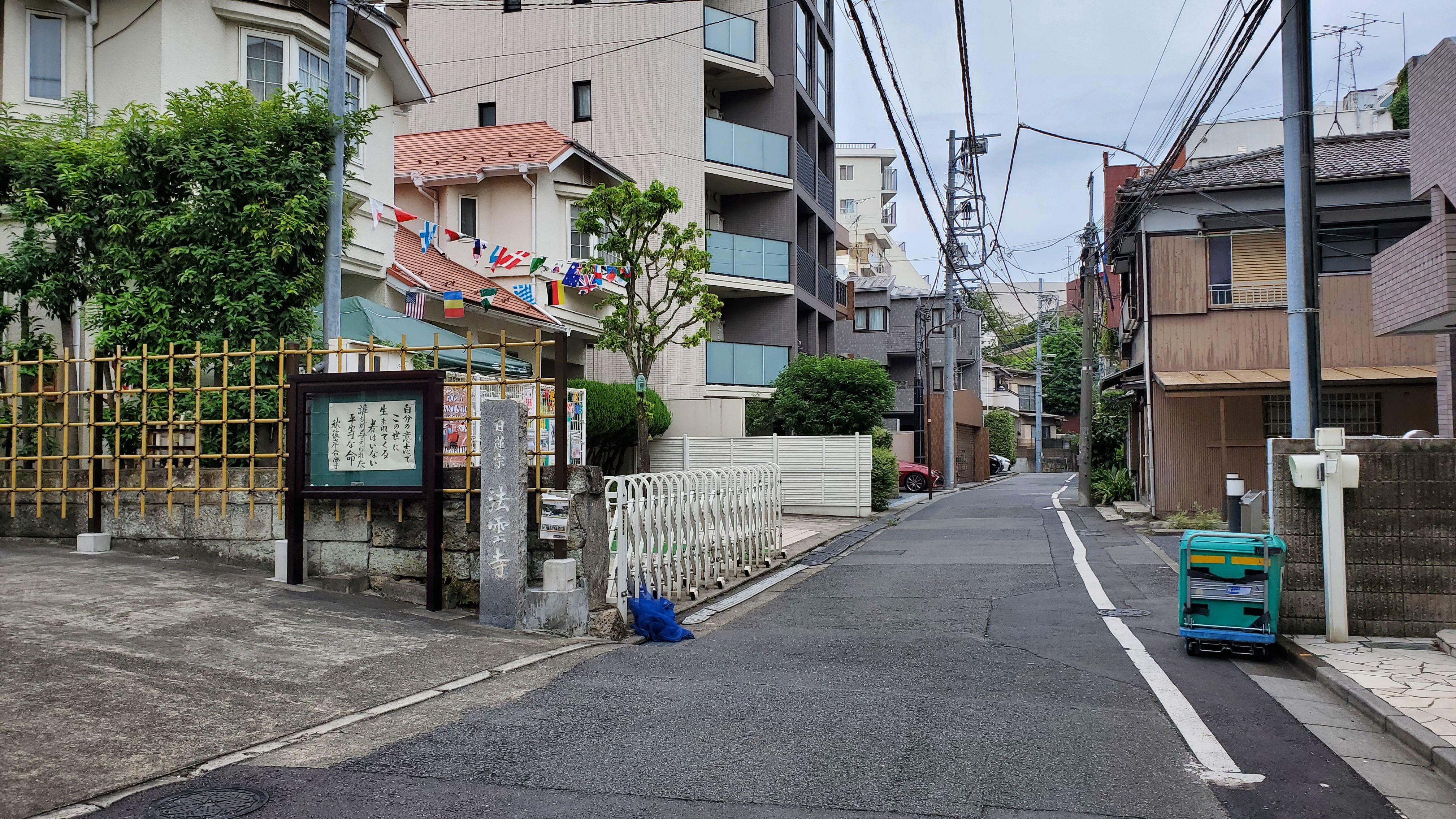 以前勤務先だった南麻布あたりの坂と寺院を歩いた9月30日…… こんなお店はなかったのにな~ 左「ひき肉少年」……『クミン・トマト・チキンスープで炊いたご飯に、秘伝のスパイスを効かせた鶏ひき肉たっぷりのあんかけをのせました。エキゾチックな香り漂う、全く新しいスタイルのお料理です。(同店HPより)』 右「MAISON D' AHNI」……『バスク地方の伝統的なスイーツ「ガトーバスク」、「マカロンバスク」を中心とした焼き菓子と、日本の四季折々の食材を活かした色とりどりの生菓子をご提供するパティスリーです。(同店HPより)』 私にはチンプンカンプンです。 古いタバコ屋さんがあったんだけど、なくなっちゃった。 左「DROGHERIA SANCRICCA」……ドロゲリア サンクリッカって読むらしい。『ドロゲリアとは、イタリアで食品などを扱う地域に根付いた食料雑貨店のこと。 イタリアから食材を厳選するのは、イタリアマルケ州出身Matteo Sancricca(マッテオ サンクリッカ) こだわりの食材を現地生産者と直接やり取りして日本に持ってきています。(同店HPより)』 要するに、サンクリッカさんが営む食料雑貨店なのね。食材提供だけでなく食事もできるみたいだけど、ランチタイムのティラミスとサラダが付いた和牛カルボナーラは2,000円だって。ドリンクセットはプラス500円みたい。安いのか高いのか? 食べてみないと分かりませんね~ キリンがいっぱい立ってました…… 広大な敷地に再開発……敷地面積11,087㎡に地上45階建て……駅上の白金タワーと同じ階層ですね。共同住宅、保育所、診療所、病院や工場が入るらしいけれど、2LDKでも1億円以上でしょう。完成予定は2023年3月31日みたいですが、すぐに売れちゃうのかな~ ヴィンテージマンションってやつに、みなさん群がるみたいだから。 新古川橋……渋谷駅南から天現寺橋までを流れる「渋谷川」の下流が「古川」になります。写真右方向には「古川橋」があるから、当然こちらは後から架けられた橋。手前が港区白金で渡ると南麻布……何度も渡ったな~ 昭和10年架設だそうです。 さてさて、川を渡ると明治通り……寺院が2寺並んでいます。最初に写真の左隅に見える山門から… サラリーマン時代、この歩道も幾度となく歩きましたが素通りでした。 幽霊のような私…… 真宗大谷派 西福寺…… 西福寺山門…… いつものショット…… 何処もそうですが、お手入れが行き届いています。 参道左に鐘楼……なぜか梵鐘がない…… 参道を進むと……左に…… 手水盤と…… 親鸞聖人像…… 西福寺本堂……『寛永7年(1631年)に浄土真宗本願寺派麻布山善福寺(港区元麻布)の第14世住職准海師の弟以伝(海伝とも号す)が、万治3年(1661年)9月9日に浄土真宗本願寺派(西本願寺)より真宗大谷派(東本願寺)に転派し、開基として現在地に創建いたしました。』(同寺HPより) 善福寺は今月21日に訪問しましたが、弘法大師によって開山されるも、親鸞聖人の高徳に傾倒して浄土真宗に改宗した寺院です。転派して開基とはすごい方です。 ちなみに、現在の西本願寺は豊臣秀吉から寄進された土地にあり、東本門寺は徳川家康が寄進した土地と聞いたことがある。海伝和尚は秀吉が嫌いだったのかもしれない……私の独り言です。 そうそう、御本尊は阿弥陀如来でした。 本堂扁額……金生山 西福寺『西福寺の「西」は「西方浄土の意なり」、「福」は「六波羅密なり」とあります。「六波羅密」とは、波羅密は梵語で「度」または「至彼岸」と訳し、迷いの世界を渡って證の彼岸に到る菩薩の行(不施・持戒・忍辱・精進・禅定・智慧)を言います。 又、一説には「金生」とは昔の地名で「金生谷」からとったもので、「西福」とは善福寺の西にあるからだという説もあります。』(同寺HPより) 場所が変わってなければ、善福寺の西じゃなくて南なんだけどな~ 本堂・庫裏は、延享2年(1746年)・明和9年(1773年)と昭和20年(1945年)の三度焼失。現在の本堂は昭和38年(1963年)、庫裏は昭和55年(1980年)に再建されたそうです。二度と失われないことを祈ります。 本堂前から……手水舎の上は藤棚かしら? こじんまりとした寺院ですが、心休まるひと時でした。《おまけ》 今日の空……9時58分 46年ぶりという10月31日の満月が見られるかもしれない。おまけに今年2020年で一番小さい満月だって。同一月に2度満月があったときの2度目をブルームーンと呼ぶそうな。青く見えるのかと思いきや、今日の月は普通の色だって……それでも楽しみに拝みましょう。 やっぱり月見酒が必要かな~