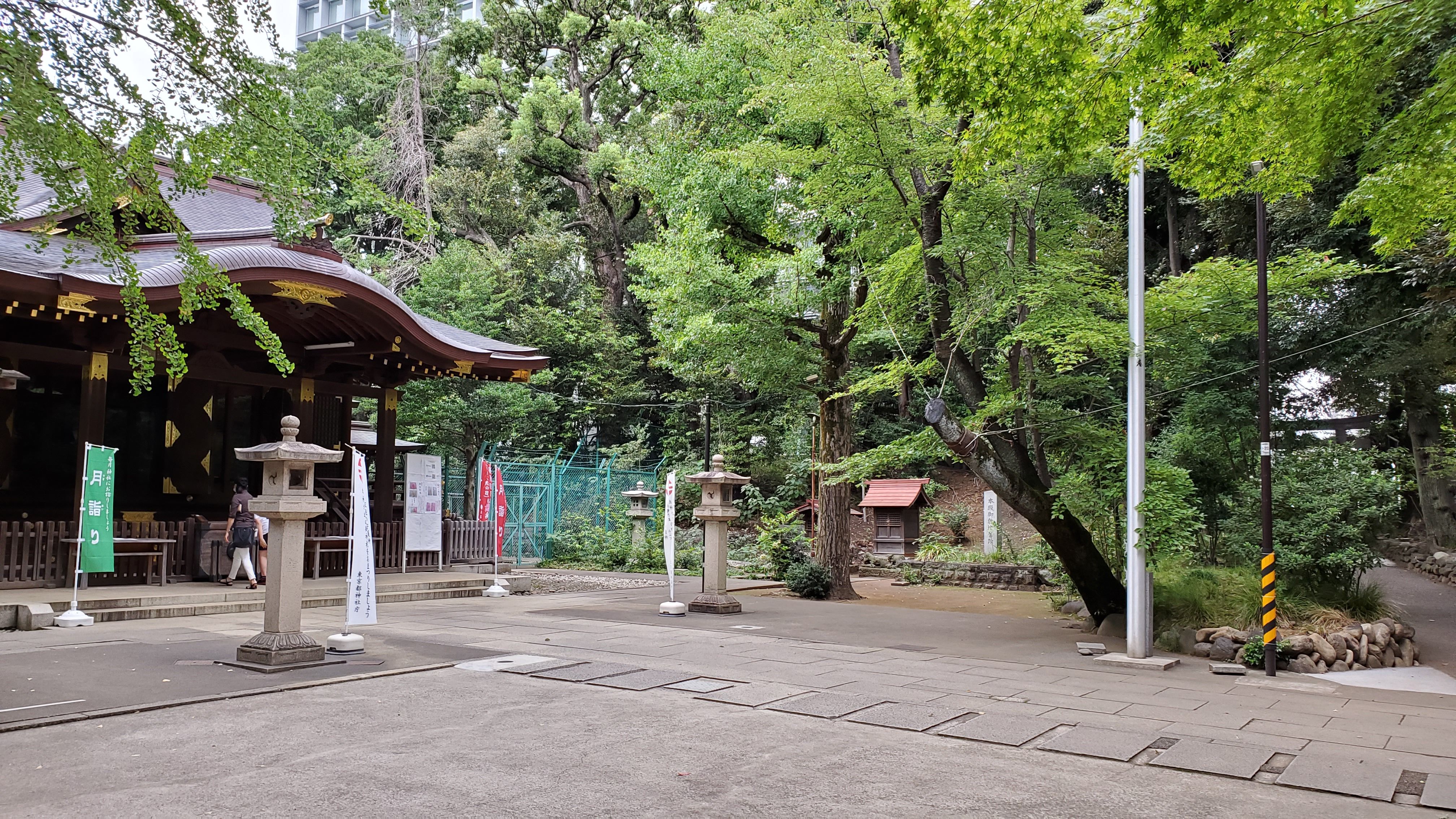9月22日のブラブラ…… 北側からの参道……表参道から入社して、写真左手の氷川の杜公園で金王相撲跡を眺めて上がってきました。写真正面へは行かず後方へ行く私…… 二之鳥居へ進む石段の左側茂みの中に…… 石碑……「明治丗七 八年 戦役記念碑」とあります。日露戦争の記念碑でしょう。「希典書」とありますから、こちらも乃木希典が書いたのでしょう。基礎石の「一番組」ってのは火消し? 江戸時代じゃないから消防組かしら? 記念碑の下にある岩には「守武萬代石」と彫られています。意味は分かりませんが、このあたりに常盤御前が植えたとされる御神木の「常盤松」があったようです。間違っていたらごめんなさい。 二之鳥居に向かう参道の石段ですが、社殿は登り切ったら左に90度曲がった所です。 二之鳥居……狛犬がお出迎え。 昭和15年(1940年)奉納……社殿を新築した時のものでしょう。 阿吽の向きがよく見かけるのとは逆……どちらが正しいのかは知りません。調べるの面倒だから知らん顔をしている私です。こうやって書いておくと、連れ合いが教えてくれるかもしれません。 南西の明治通り方面からは結構上っています。 二之鳥居をくぐって左折すると手水舎。 神楽殿と奥に社務所…… この後ろの崖下に石碑があります。 渋谷氷川神社社殿……『慶長10年に記された「氷川大明神豊泉寺縁起」によると景行天皇の御代の皇子日本武尊東征の時、当地に素戔嗚尊を勧請したとある。(東京都神社庁HPより)』西暦では100年といったあたりでしょうか。渋谷最古の神社と伝えられているだけあります。 昭和13年(1938年)に新築した社殿は第2次世界大戦の戦禍を逃れ、改修されているのでしょうが現在まで維持されています。当社の旧社殿が東玉川神社に譲られましたが、つながりが確認出来て良かった~ 御祭神は、「素戔嗚尊」「稲田姫命」「大己貴尊(おおなむちのみこと)」「天照皇大神」……重厚な社殿でした。 社殿扁額…… 江戸時代には「江戸七氷川」のうちの一社に数えられたそうですが、あとはどこかしら? 「赤坂氷川神社」は有名らしいし、今度行こうと思っている「麻布氷川神社」もそうでしょう。以前行った「白金氷川神社」はどうなのかしら? 確か「港区最古」だったはずだけど…… 背の高い木々に囲まれた境内で、気持ちが良かったです。 立派な造りです。 社務所の左に古そうな蔵…… なんで参院議員・山谷えり子氏の立て看板? 心当たりはあるけど今日はこれでおしまいです。《おまけ》 セブンプレミアムの極上炒飯……冷凍チキンライスが美味しかったから、試しに買ったのを昨晩食べました。やっぱりレンジは使わずにフライパンで調理。調理と言っても振るだけなんだけど、味もパラパラ感もそこいらの中華屋さんに負けていない。チャーシューもちゃんと醤油のコクをまとっていました。チキンライスの400gに対して、こちらは300gなのでノンアルデーの私にも適量。一応 連れ合いに鰹昆布出汁をとってもらって卵水を添えたからお腹いっぱいでした。しかし恐るべし昨今の冷凍食品。税込み321円。サラリーマン時代に知っていたら会社でチンして多食したことでしょう。カップ味噌汁も付けて500円以下だものね~ モーニング帰りに見かけました。キャラクターは知りませんが楽しいです。 今日の空……10時24分 イチョウはまだ緑……いつごろ変色するんだっけな~ 九品仏は紅葉より先にイチョウが黄色くなりましたっけ。今年も行ってみるか~ 連れ合いが、コーヒーとおやつの栗蒸し羊羹を運んでくれました。美味しかったです。ごちそうさま~