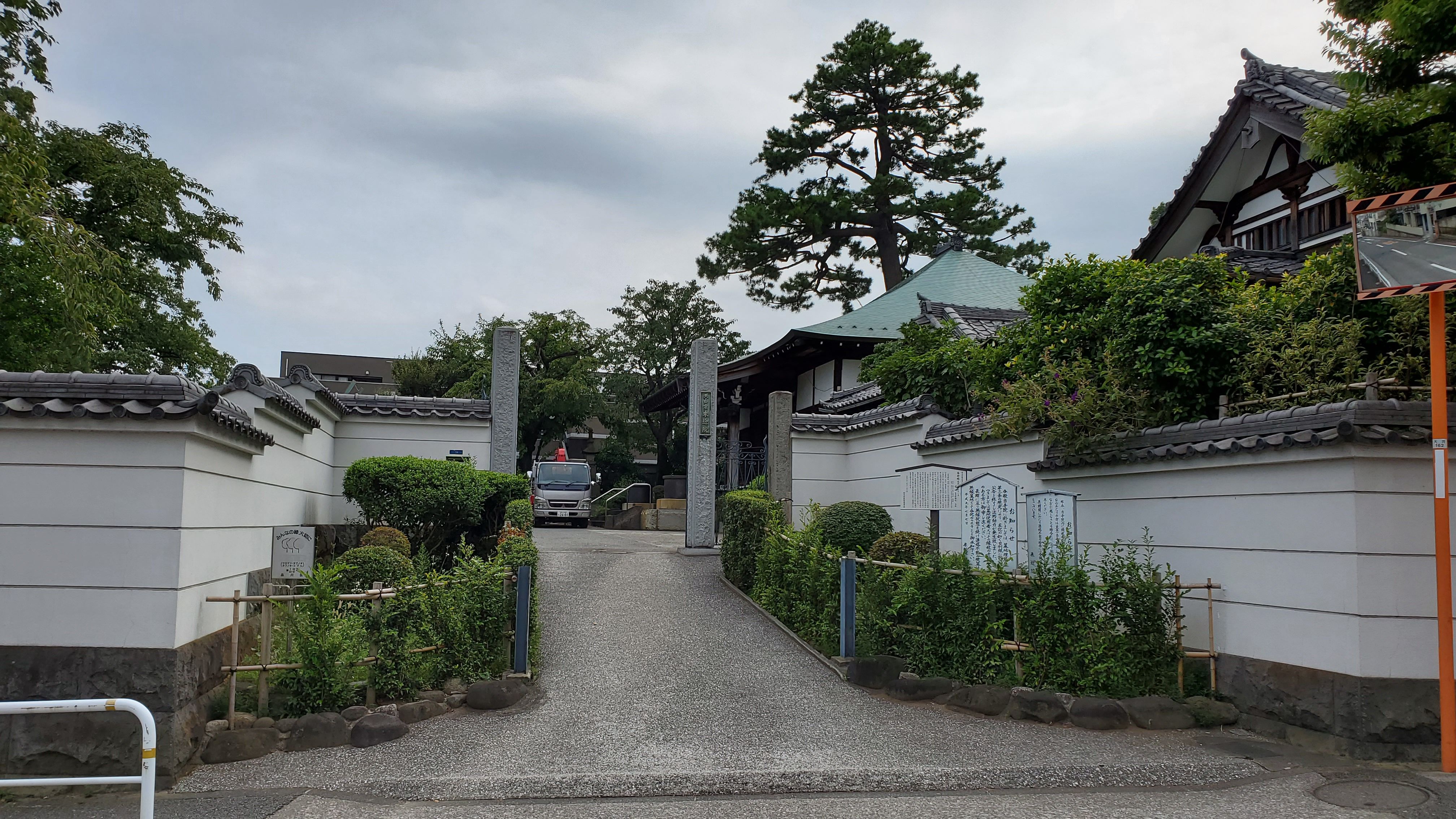 今日から10月だというのに、まだ8月31日の散歩日記…… 私の後ろには石造念仏講供養塔……境内だったところに道路ができて分断されちゃったようです。 来迎院……天台宗の寺院です。少し北にある光福寺と西光寺は浄土真宗でしたが、池上通りを南西に進み、環七を越えると日蓮宗の寺院が大半になります。池上本門寺があるから当然ですね。 ちなみに門についている菊のマークは「菊輪宝(きくりんぽう)」と言って延暦寺の寺紋みたい。菊の御紋と言えば皇室の紋だけど、元は比叡山に自生する叡山菊を最澄様が献上したことが始まりと伝えられるそうです。この延暦寺の寺紋は、菊に仏教の宝輪を重ねたとのこと……蛇足ながら、天台宗の宗紋は「三諦章(さんたいしょう)」と呼ばれ、菊に三ツ星です。 鹿嶋山来迎院……平安時代第63代冷泉天皇の代・安和2年(969年)9月19日尊栄訪印が、慈覚大師作の薬師如来を安置して「鹿嶋示現山常住鶴林寺観音来迎院」と名づけたのが始まり。同時に、常陸鹿嶋神宮から祭神・武甕槌神(たけみかづちのかみ)の御分霊を奉斎し、境内の社に安置した。後に住職不在となり大破したが、南北朝時代 貞和3年(1347年)に了覚法印が来住して中興の開山となり「示現山常林寺観音院」と改称。(天台宗東京教区HPより・以下同) 連れ合いは、鹿島神宮に行ったことがあったよね~ 景色を賞した徳川三代将軍家光公が、正保2年(1645年)境内に「大井の御殿」と称する御殿を新築。鷹狩のたびに御殿で献茶があったため、近隣住民は同寺を「御茶屋御殿寺」とも称したと。御本尊の薬師如来を篤く信仰した家光公が寄進した日光月光菩薩と十二神将は本尊・薬師如来の脇侍として安置されているそうです。 こじんまりとしているけど整った庭園…… 半跏思惟像……私の好きなポーズ 寛文7年(1667年)栄住和尚が住職となった折、将軍家と檀信徒の寄進によって現在の本堂が新築。これは現存する品川区最古の木造建築物だって。 上野寛永寺一山冷泉院の住職が当寺を兼務することとなった天保4年(1833年)、「鹿嶋山来迎院」と改称したそうです。幾度も変えてきたようですが、最初の寺名はいかにも長すぎたでしょう。 ちなみに、トラックが通行止めをしていたので本堂へは近づけませんでした。 トラックの荷台後方に…… 宝篋印塔……文化8年(1811年)義周和尚の時に本堂の大修繕が行われた際の記念のようです。 明治元年(1868年)神仏分離令によって鹿嶋神社は分離されたけど、御神体は同寺でお祀りし現存に至っていると。 来迎院文書……品川区指定有形文化財 『附(つけたり)』ってのは初めて知ったかも。文書本体に添えられる参考資料でしょう。 品川歴史館……来迎院から池上通りに出たところにあります。運が良いか悪いか? 月曜日だったからお休みでした。 この後、鹿嶋神社に寄りましたが続きはまた今度……《おまけ》 今日の朝刊一面広告は「LUMINE」……「ゆりやんレトリィバァ」さんと言うらしい。私は全く知らないけど有名なのかしら? 昨日は南麻布あたりの坂と寺を探索しました。「どこに行ったのかしら?」と気にしている連れ合いには、別の「青木坂」を一枚メールで昨日送りました。ちんたらアップしているから、この辺りの日記は来月になっちゃうかも……と言うことで、もう一枚だけ予告として。