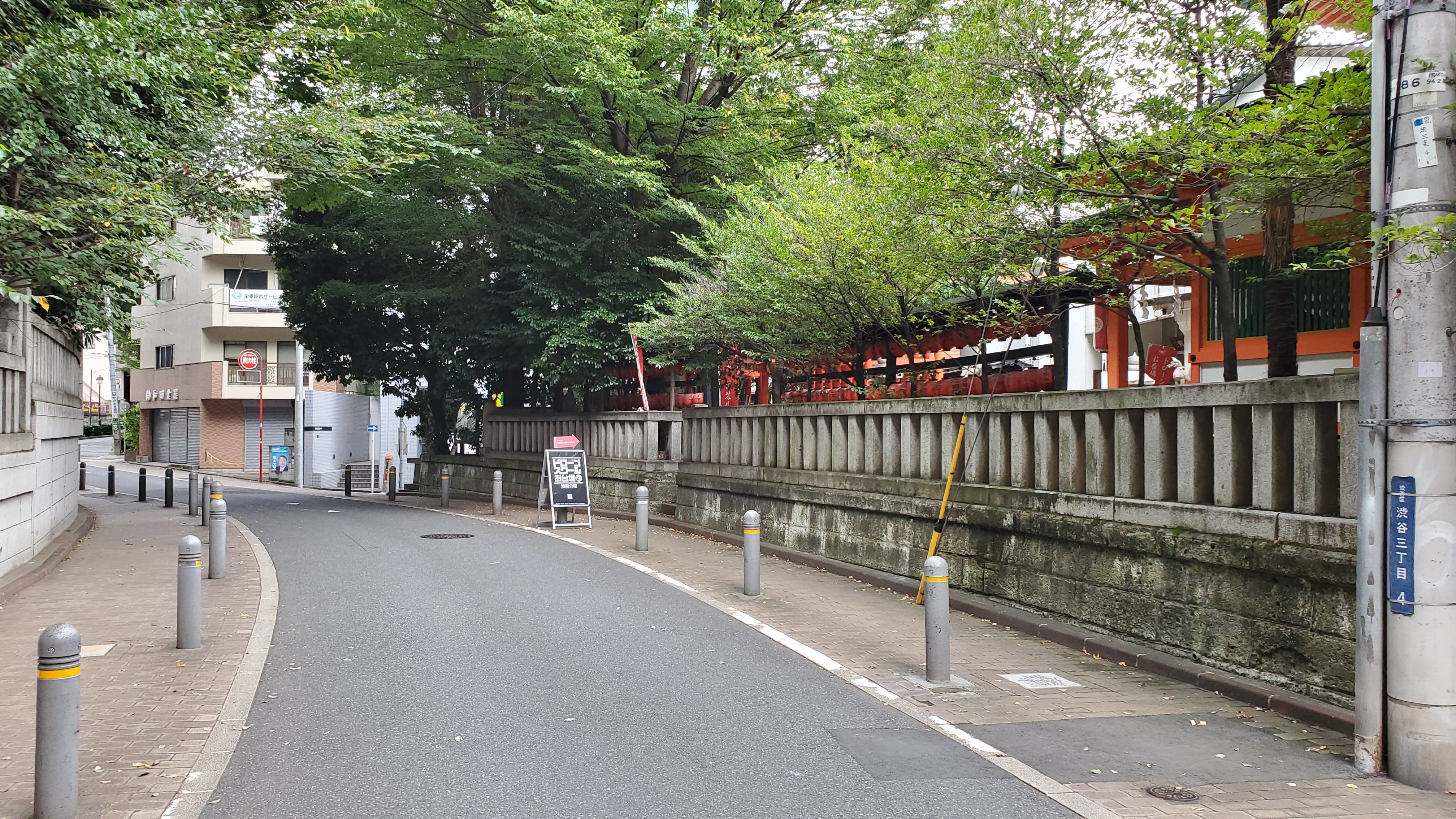 渋谷氷川神社を第一の目的に出かけた9月22日…… 金王八幡宮から八幡通りを並木橋に向かって南下……緩やかに下り。「ANTIVINO」……アンティヴィーノって読むのかな? イタリアンみたい。昼なのに結構混んでいました。4連休最後の日だったからかしら? 並木橋交差点……右に行くと渋谷だよ~ 対角線に人だかり……二階の「羊門」は電気がついてないから一階の店? 山下本気うどん……ってのに並んでいるみたい。讃岐うどんらしい。『うどんは厳選した小麦を店内で製造し、一晩熟成させて提供しています。 出汁は昆布と鰹をベースにとり、香川県産のしょうゆで仕上げました。 うどん×酒 夜はゆっくりと、お酒も楽しんでいただけます。(同店HPより)』 昔、仕事で訪れた香川県。帰りに、訪問先でタクシーを呼んでもらい「どこか美味しい讃岐うどんの店 ありませんか?」とドライバーさんに尋ねたら、「私も食べるから行きましょう」と連れて行ってくれました。田んぼの中の掘っ立て小屋。どんぶりを持って、大・中・小 好みのうどん玉を入れてもらう。トッピングの天ぷらや稲荷ずしをチョイスして会計。うどん汁は最後に自分で入れる。うどんも出汁もとっても美味しかった。控えめにしていた出汁はつぎ足しちゃった。駅前の店よりもあんな風情の店が美味しいんです。私の暮らす街にも讃岐うどん店はあるけど、私には今一。美味しい讃岐うどん食べたいな~ 明治通りを恵比寿方面に進むと予定外の赤い幟……氷川神社より手前 立派なイチョウの後ろに…… 反対側にまわって……ちょっと寄り道 商和稲荷神社……鳥居、手水盤、社が一坪以下のスペースに。 鳥居の扁額……大正15年(1926年)9月ごろ、この街に並ぶ商店の為に、近隣の地主・故 野崎善助様がご厚意で稲荷神社を奉納されました。その後、ご利益があったのでしょう、店が集まって商店会を発足。会の名称「商和会」にちなんで「商和稲荷神社」となったそうです。 手水盤…… 賽銭箱は足元にあって、祠の後ろは鏡になっていました。「商和稲荷神社のご本体は伊勢の外宮様より戴き…」とのことなので、祀られているのは倉稲魂命(宇迦之御魂神)じゃなく、「豊受大御神(とようけのおおみかみ)」なのでしょう。衣食住、産業の守り神です。昭和30年代40年代に続き、平成8年(1996年)には新たに発足した渋谷東商店会として従来の御神体を納め、新たな御神体を戴き多くの講員参加で御礼の参拝をされたとのことです。みなさまごくろうさまです。 なんでミッキーマウスがいるのかしら? そうそう、立派な御神木のイチョウですが、稲荷神社が奉納された時に植樹されたもので、当時は直径3㎝、高さ1.5mだったそうです。もうすぐ100歳ですね~ 道路に挟まれた三角地にある小さな社でした。明治通り拡張のために削られてしまったのでしょうが、イチョウの木と共に、これからも商いの繁盛と家内安全を見守ってくれるでしょう。《おまけ》 いろはすのフレーバーウォーターは好きです。「白ぶどう」昨日、初めてみかけたので6本買っておきました。うっかりすると、すぐに店頭から消えてしまうので……「ハスカップ」があるらしいけど北海道限定なんだって。やっぱりね~ いろはすの会計をしたらレシートにつながってきました。「1本無料引換券」が6枚。いろはす1本に1枚出てくるみたい。「ファンタ プレミアピーチ・380ml」がもらえる券。今月19日に発売開始の新味商品だから、引き換えは20日からということらしい。1本150円(税別)の新商品が6本もらえるということに只々驚きとありがたい気持ちの私でありました。「もっと買っておかないの」って?……気が向いたら明日寄ってみようかしら?