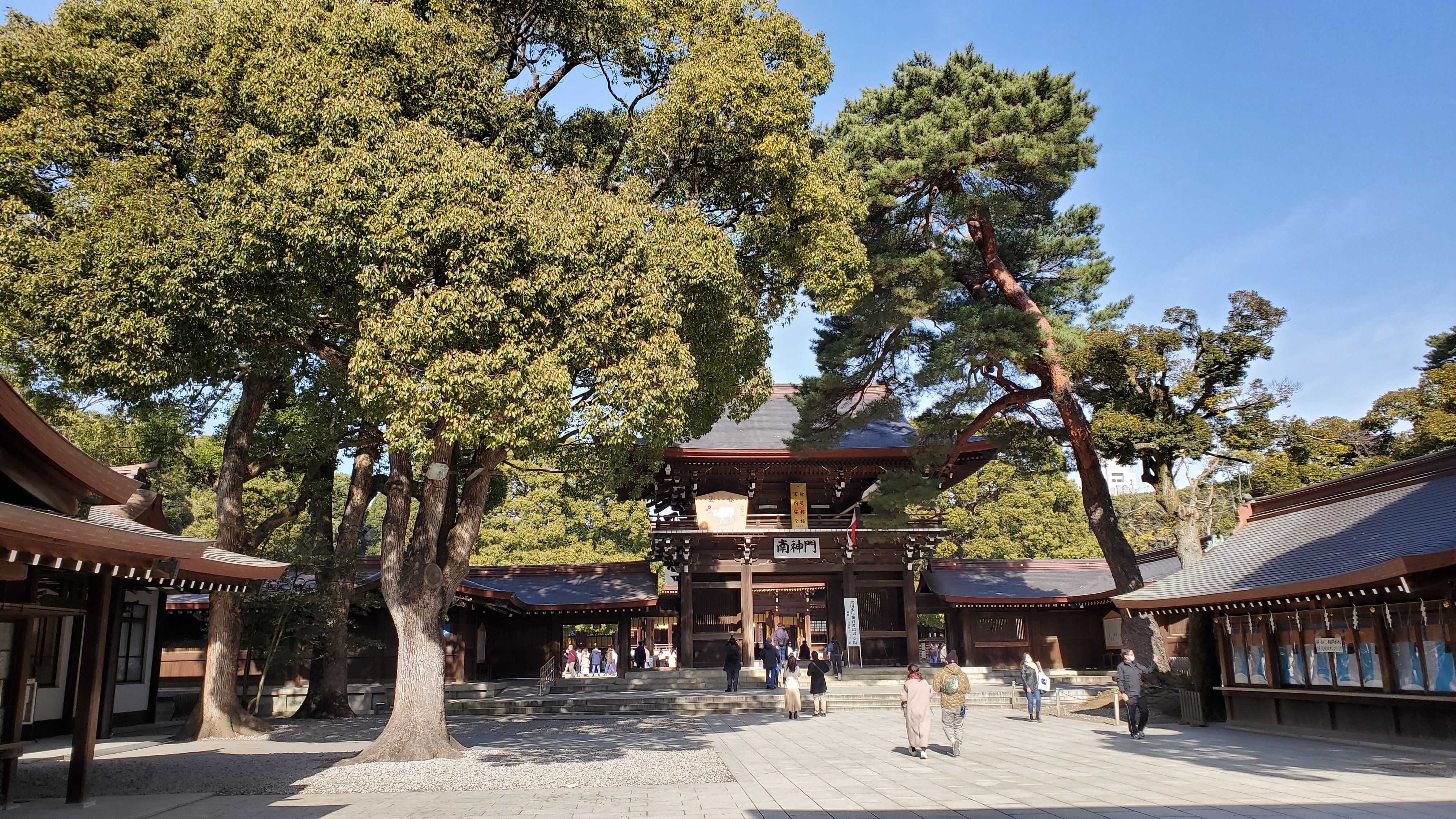 先月、人間ドックの帰りにふらっと立ち寄りました。 この景色は20回ほど見てきましたが、踏み込んだのは初めて…… 北参道入り口…… 北参道の鳥居…… 南参道と西参道もあるのね~ しかし広そう……70万平方メートルの広大な鎮守の杜です。 鳥居左に…… 大正9年(1920年)11月1日……創建時の年月日 今年は鎮座101年 森に飲み込まれるようにして立派な鳥居……昭和20年の空襲による焼失は免れたのでしょう。 菊紋(十六葉菊)……第122代天皇の明治天皇と昭憲皇太后を御祭神としている神社です。 北参道を進みます……「永遠の杜」にポツンと独り 脇道もありました……明治神宮ができる以前は南豊島御料地(皇室の所有地)だったそうですが、畑がほとんどで荒れ地のような景観だったと。 全国から10万本の樹木が奉献され、植林や参道造りにはのべ11万人の青年が奉仕した人口林。椎・樫・楠などの照葉樹林だそうですが、燃えやすい針葉樹でなかったことが空襲による延焼を免れたのかもしれません。 北参道を進むと右手に……後で何となく気付くのですが、こちらからの入社は反則だったみたい。 左手に東手水舎……柱の両側に…「あたらしき年のはつ日に富士のねの 雪もにほへる朝ほらけかな」(明治天皇 御製) 明治38年(1905年)、乃木希典大将率いる日本軍による旅順陥落の吉報に接した明治天皇が詠んだと……天皇は、要塞開城の調印式に際して、ロシア軍人に帯剣を許可して彼らの面目を施すよう、乃木大将に指示されたそうです。勝っても負けても戦はあかん。「日の御旗たかくかかげて國民の あふぐや年のひかりなるらむ」(昭憲皇太后 御歌) 南と西の手水舎にもあるみたい。 東神門の鳥居をくぐると…… 右手に神楽殿だって……近代的やな~ 社殿前広場へは、「東」「南」「西」の三つの神門から立ち入ることになります。 ということで、今日はここまで…… 何となく足がだるいから電気リハビリに行ってきましょう。