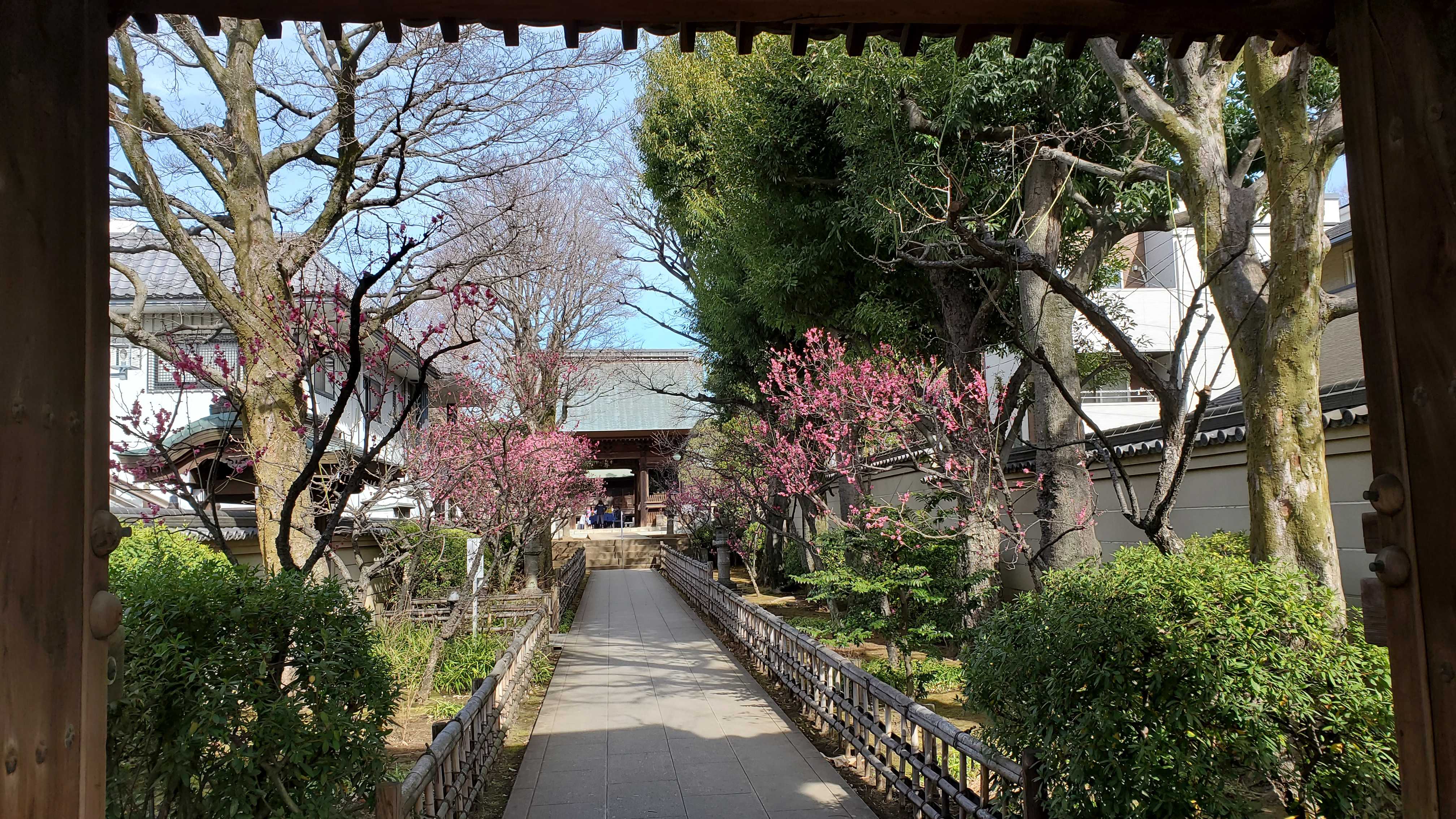 昨日は天気が良く、とっても暖かだったから予定外の散歩。京急蒲田から梅屋敷の周りを歩いてきました。報告はしないので、「どっちに行ったのかしら?」と気をもんでいる連れ合いに、梅が観られた寺社の速報です。 蒲田八幡神社……以前 呑川を下って河口まで行った帰りに存在を知ったけど、寄らなかったから訪問してみる気になった私。社殿脇の紅梅だけど、右手には天祖神社もあります。境内は大改修工事がなされたみたいですが、あの時寄っていたら違う景色が観られたかもしれません。 ちなみに、蒲田八幡神社は蒲田村が分村された折に「薭田神社(ひえだじんじゃ)」より勧請して創建されたみたいです。呑川を挟んで南北に村が分かれたんでしょう。 密乗院……真言宗智山派寺院 (玉川八十八ヶ所霊場第77番札所) いらっしゃいました 南無大師遍照金剛。 江戸時代に寺領20石の御朱印状を拝領した同寺は、800年の歴史を誇り、近隣諸神社の別当寺でもあったと。 大森八幡神社は訪問したけど、「堀之内三輪神社」「三輪厳嶋神社」「大森貴舩神社」などは見落としていました。まぁ、時間的に間に合わなかったでしょうし、「厳正寺」なんてのも発見したので次回にでも行ってみましょう。昨日も結構ハードだったけど、今日は体調が良いです。 梅屋敷駅の商店街……何の行列かと思ったら「丸鶏解体やきとり鳥若」ですって。自粛要請に応じて家飲みなのかしら。それともおやつかな~ 15時5分だったし。 妙典寺……日蓮宗寺院。 薭田神社(ひえだじんじゃ)……『延喜式内社の「薭田神社」として正史にあらわれるのは貞観6年(864年)ということになります。』と言うほど古い神社ですが、梅も古くから有名なんでしょう。 こんなの観たことない……同じ木なのに紅白の花が咲いてました。梅にしては賑やかだから、ひょっとしたら桃なのかな?《おまけ》 モーニング帰りに円融寺……白梅が最盛期。参道の紅梅は終わりです。 枝垂れ梅はちょっと寂しかった…… と言うことで、今日はこれでおしまい。詳細は後日本編で……