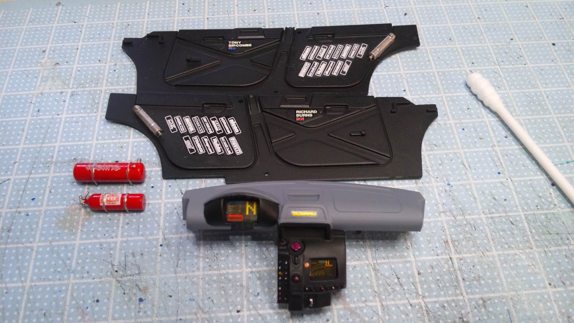 ちなみに、デカールの縁は大雑把なカットですが、私は気にしません。但し、上のダッシュボード・計器パネルはきちんと縁は切り取ってから貼りました。そうしないと、収まるべきところにはまりませんし、くぼんでいる場所なので周囲の扱いが面倒ですから……
