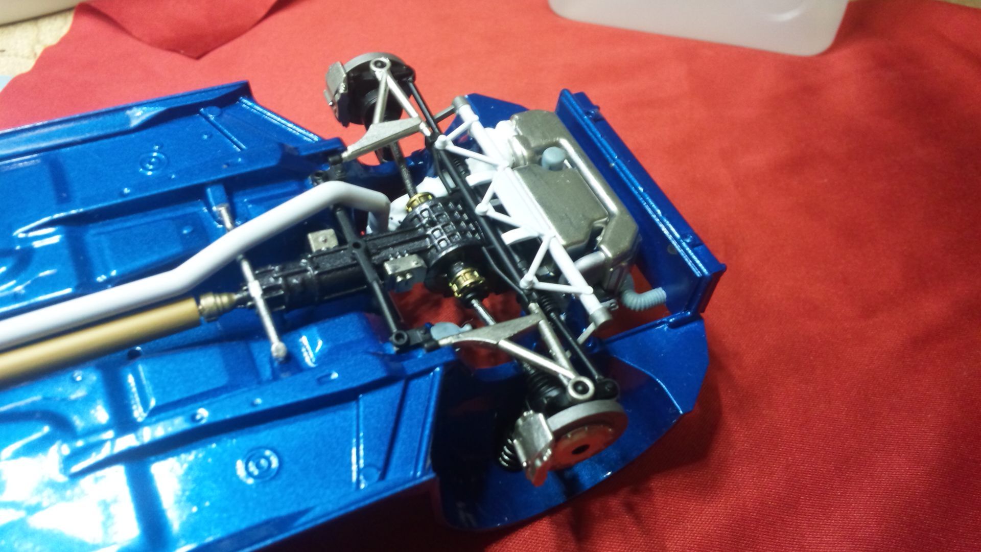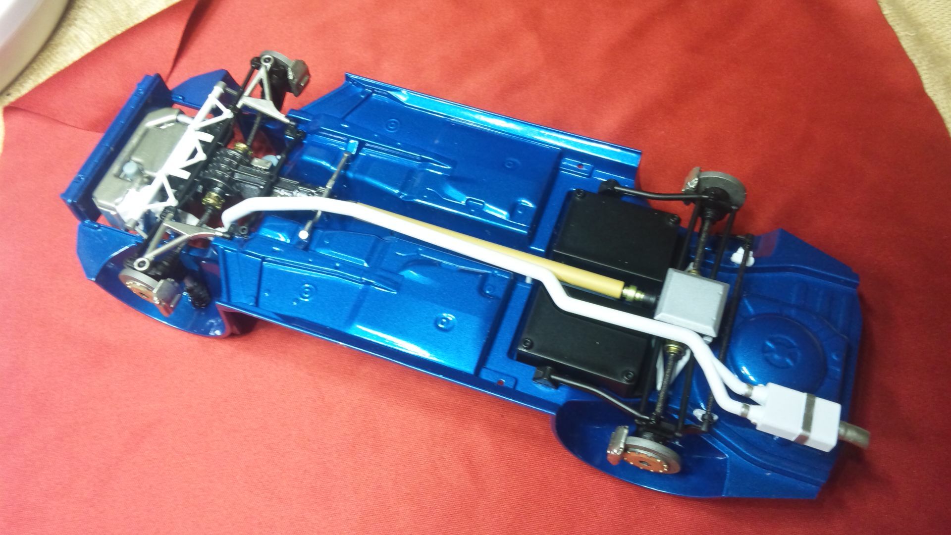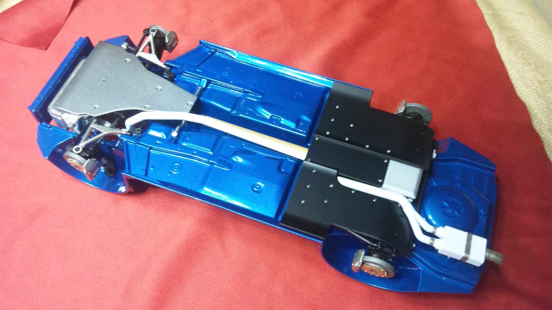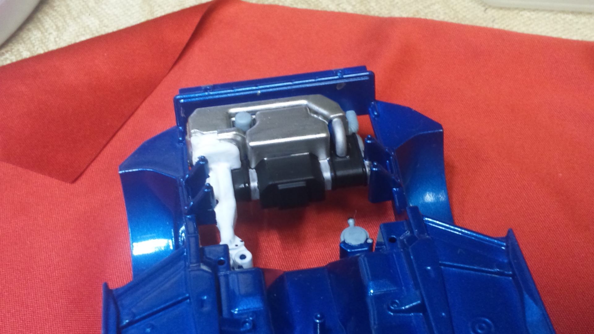 シャーシ裏側の エンジン下部に色を塗り ました。