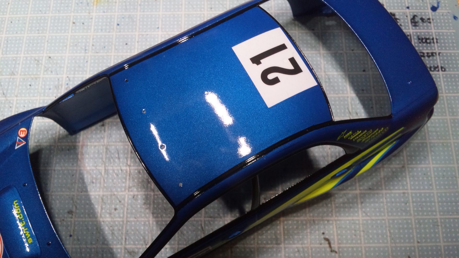 デカールを貼った後にかけた クリアー層にサンドペーパー を当てました。
