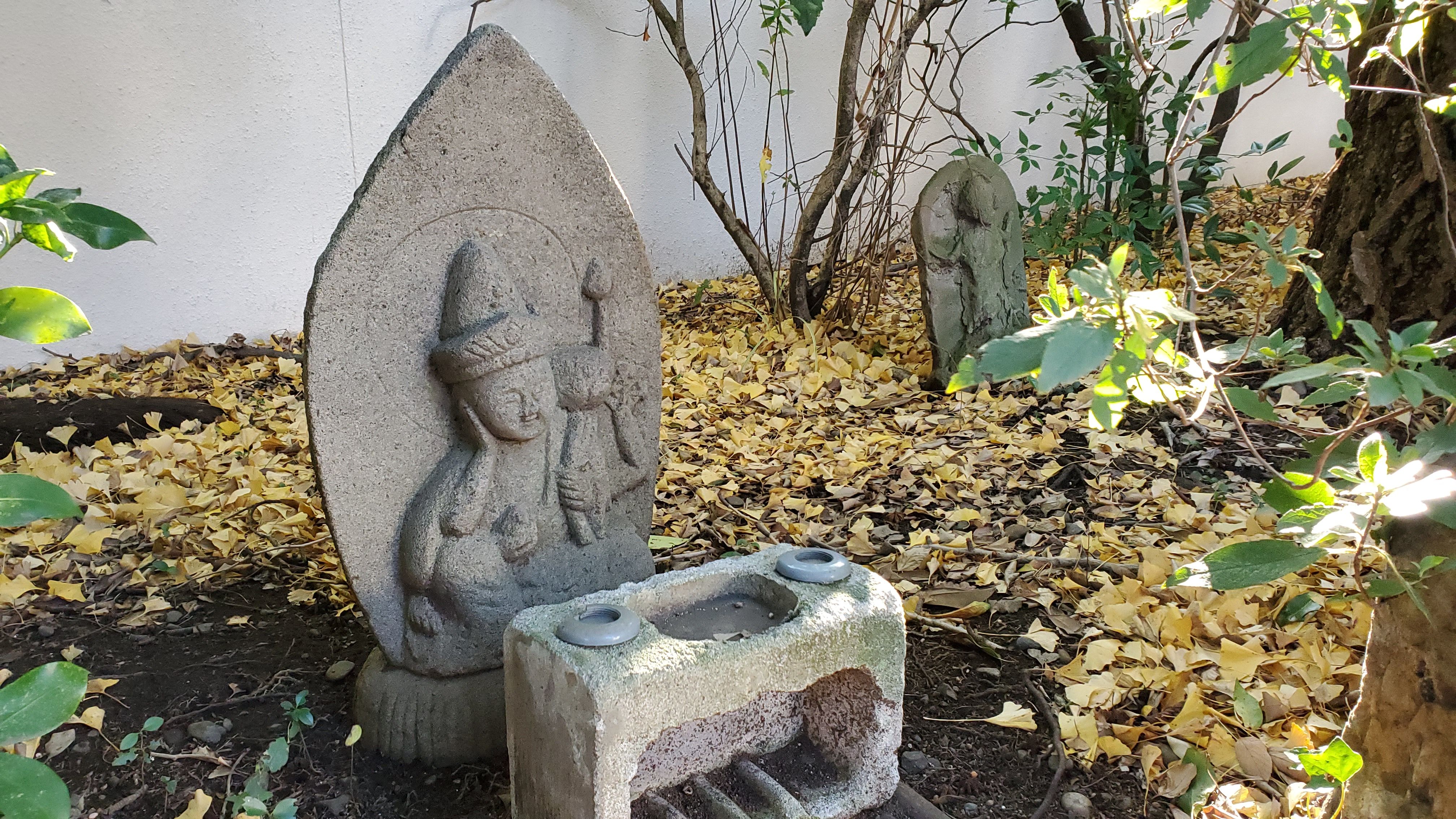 私の好きなポーズ……新しそうですが、奥の石仏は歴史を感じます。