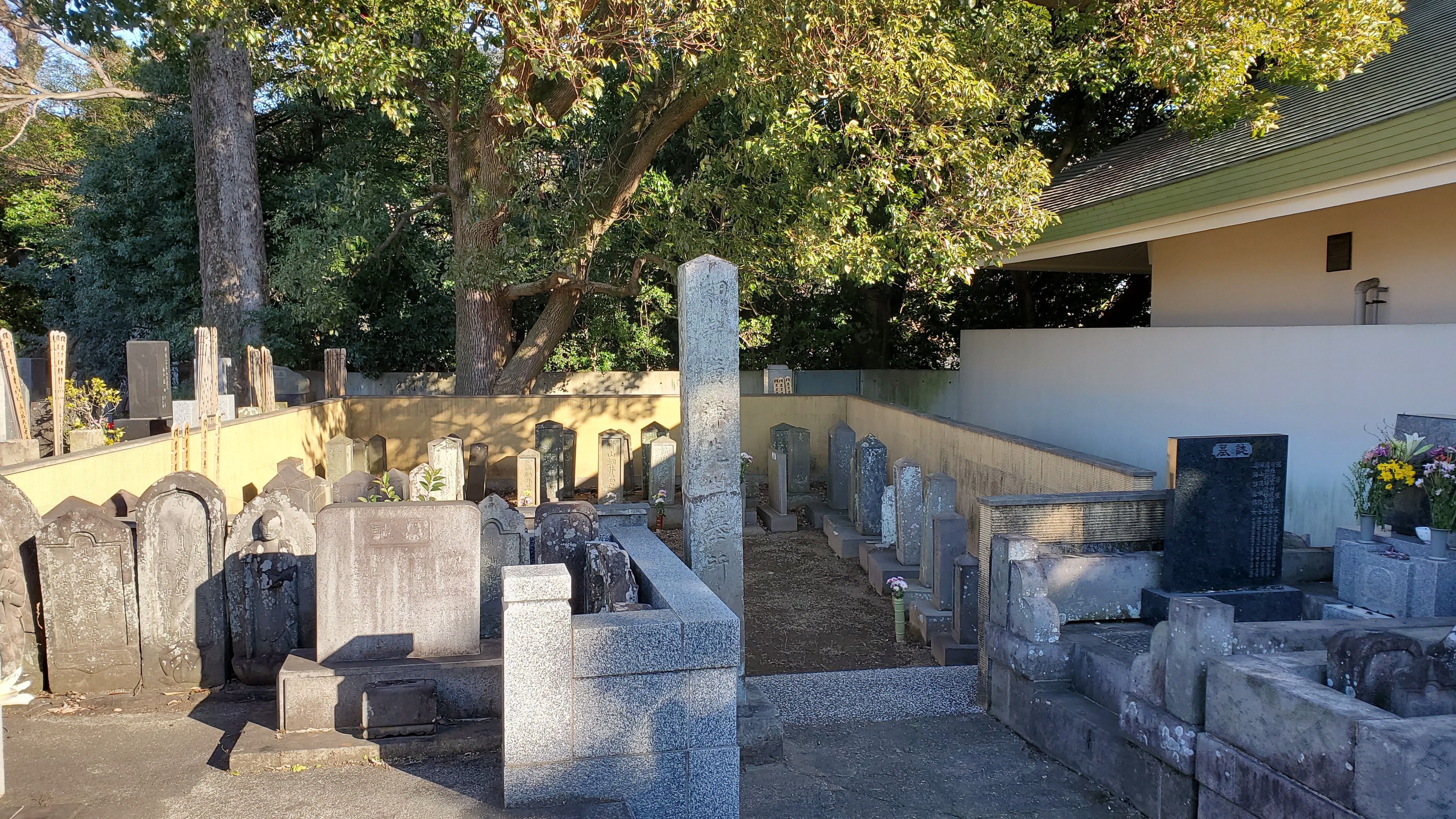 墓地の入り口に並んでいました。本来墓地には踏み込まないのですが、[史跡 細井廣澤 墓]の石碑を見ていたので探してみました。