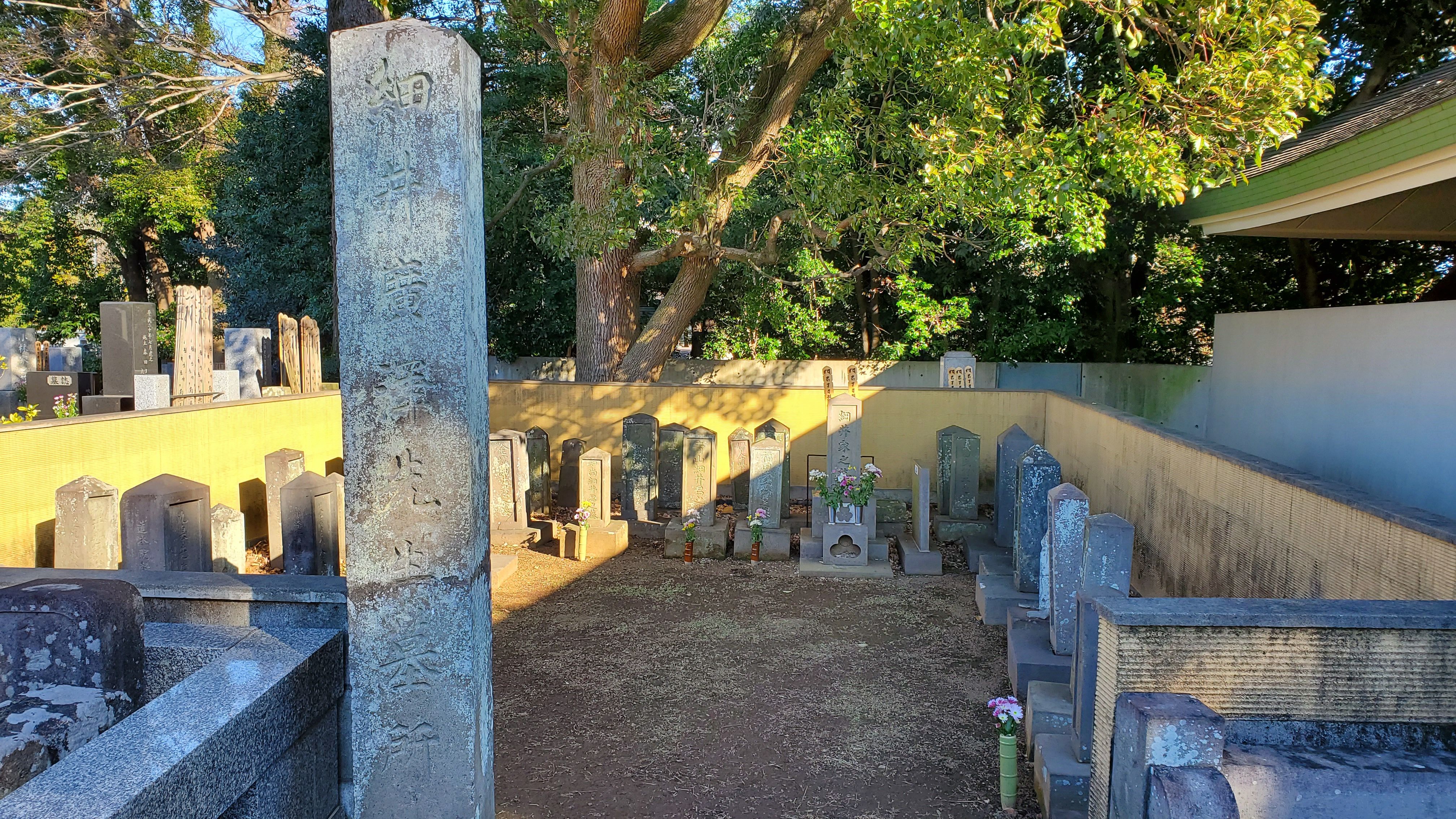 ご一族の墓碑とおぼしきが並んでいました。立ち入って覗き込んでも失礼であり、囲まれちゃうのも嫌だったので入り口で失礼しましたが、 細井廣澤先生のお墓は写真左の角にあるみたいです。