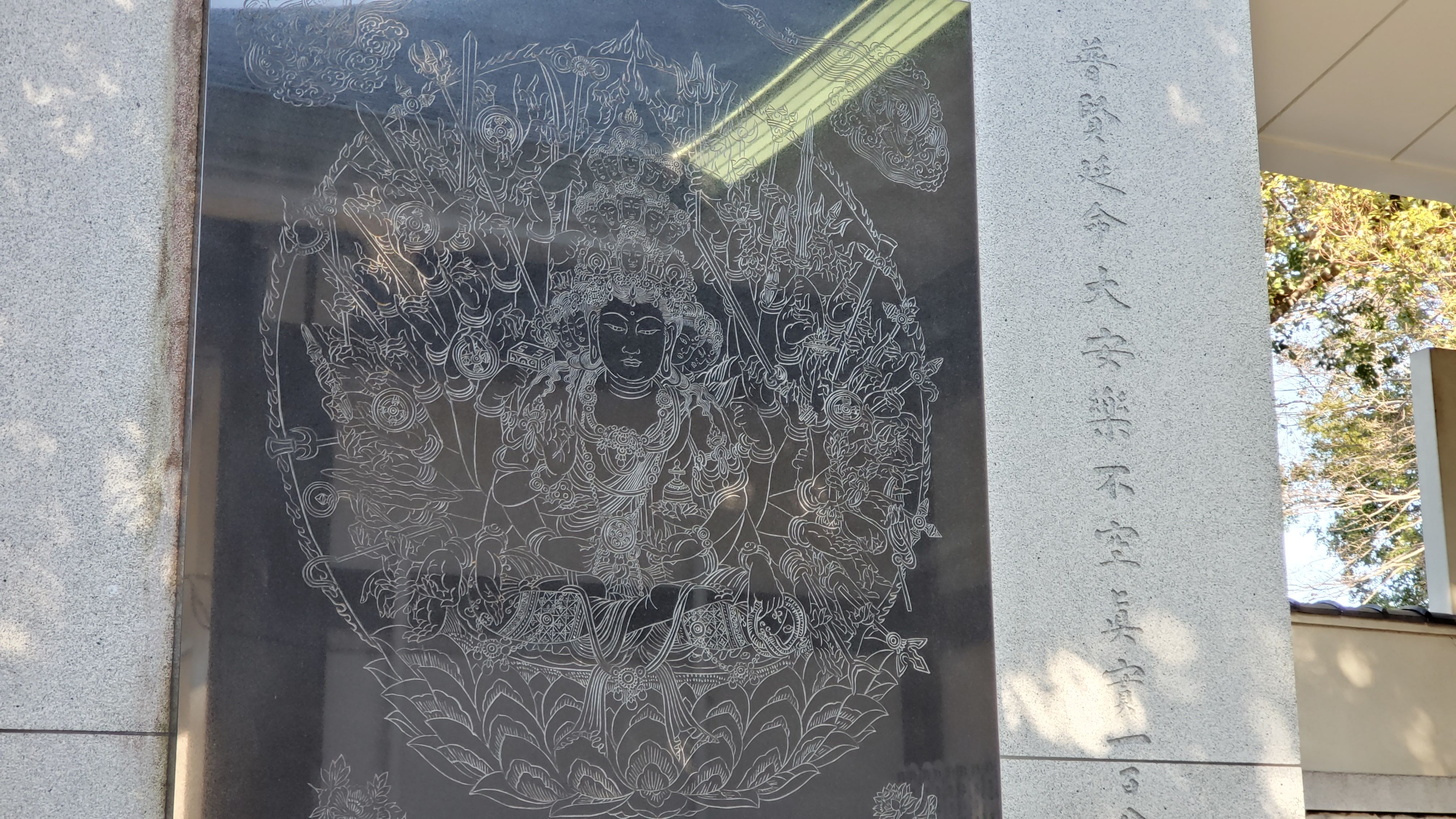脇に[普賢延命大安楽不空眞實一百八臂金剛蔵王大菩薩]の文字……108臂というだけあって、たくさんの剣が描かれています。