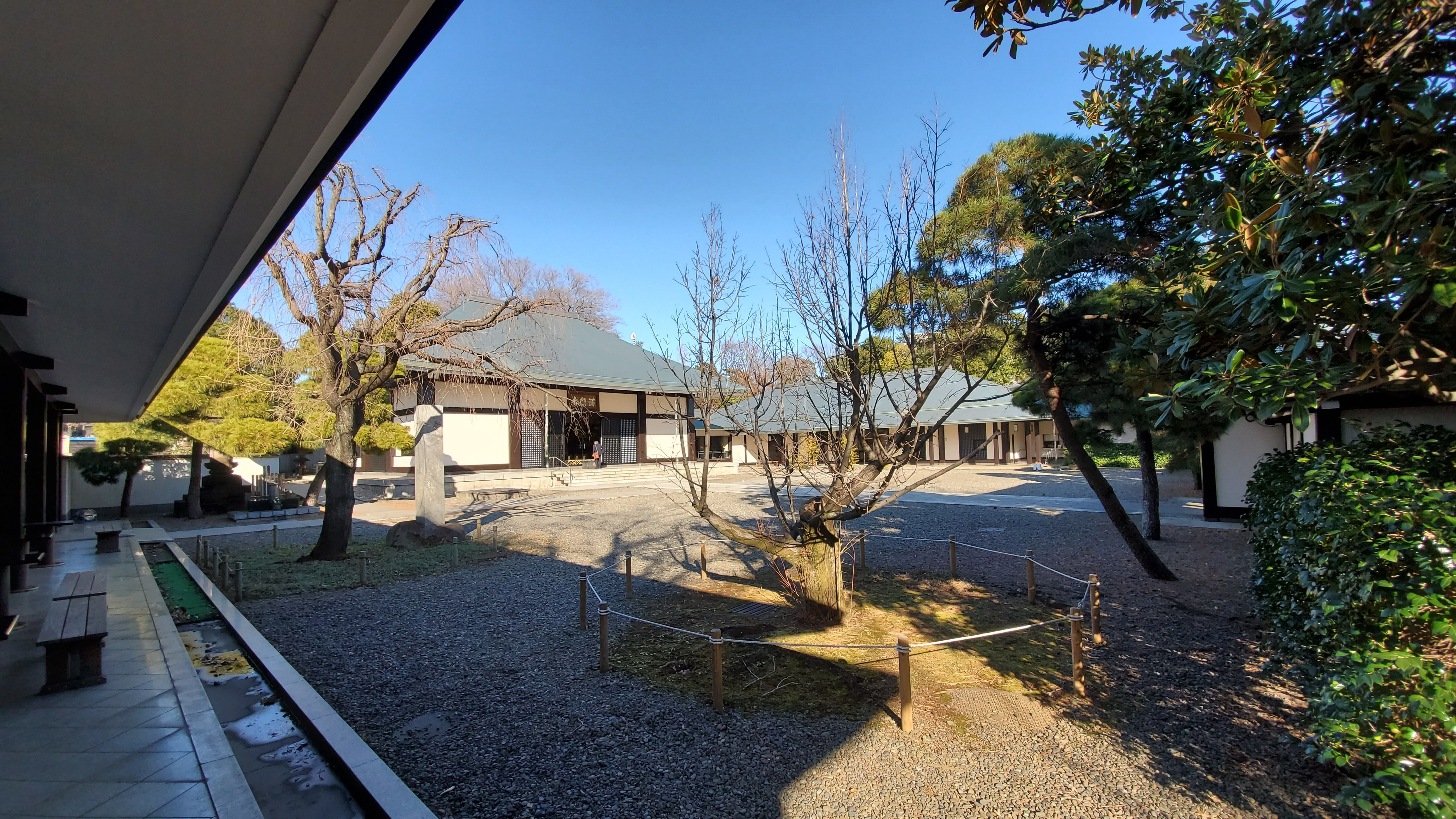 一服したので本堂左側に……左手と正面奥が広い墓地でした。