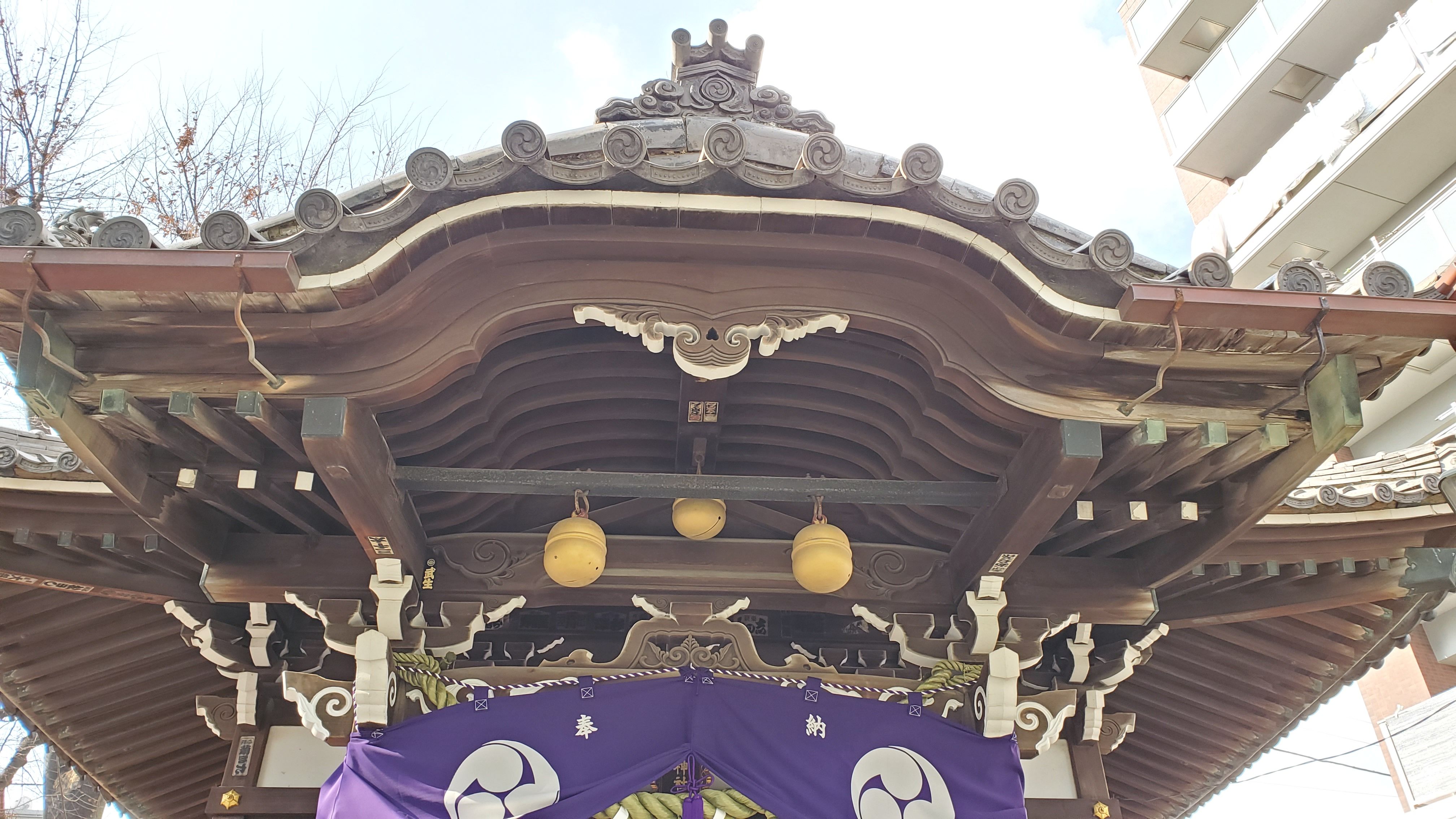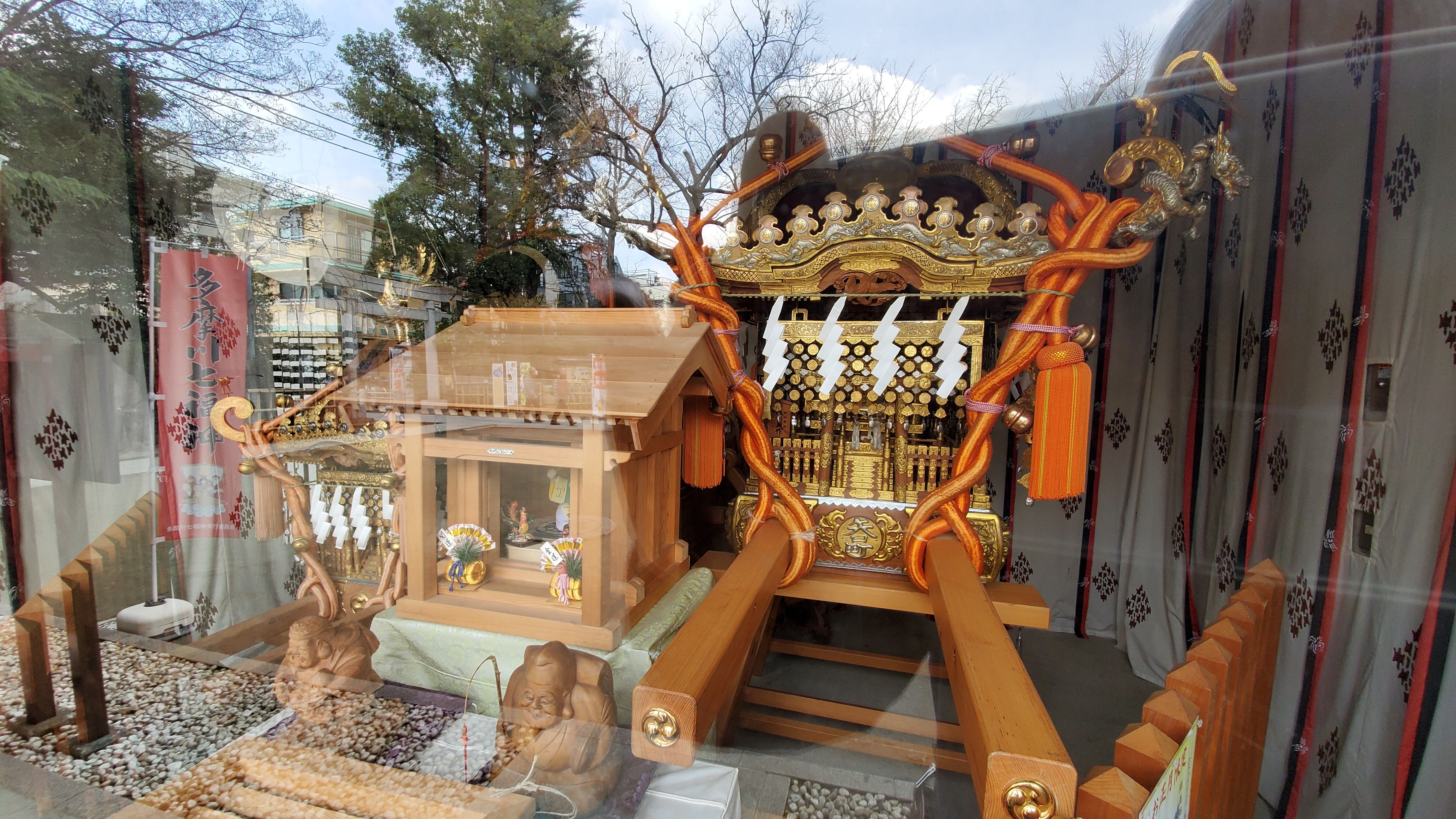 新田神社に置かれている神輿と山車……もともとは氷川神社のなんだけどな~