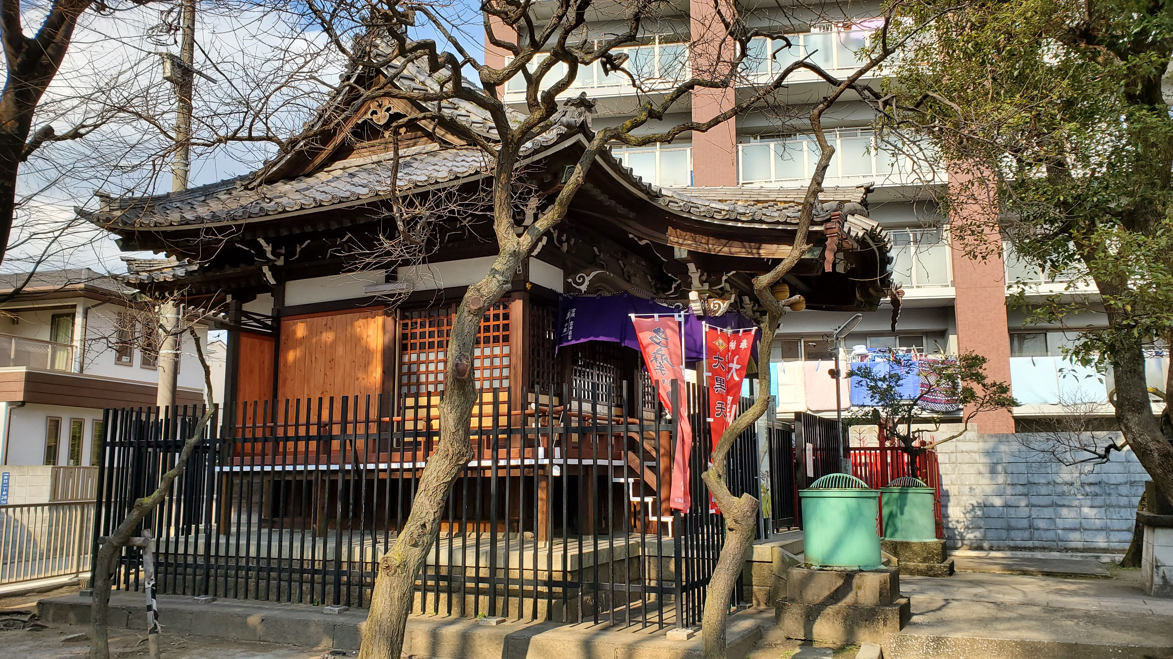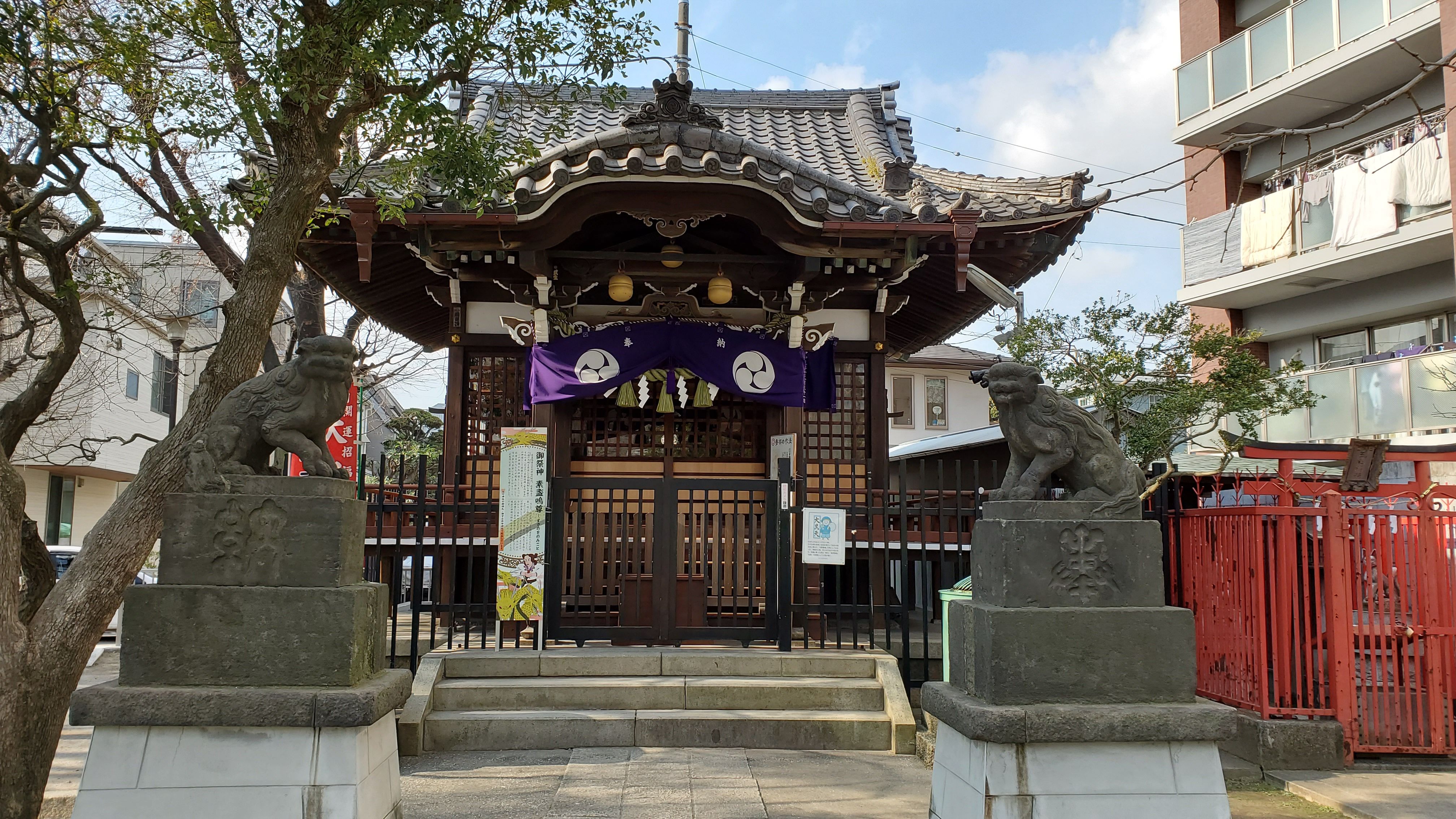 社殿前の赤い幟は[多摩川七福神]でした。「大黒天」は、社殿内におられるのでしょう……お姿は拝見できませんでした。