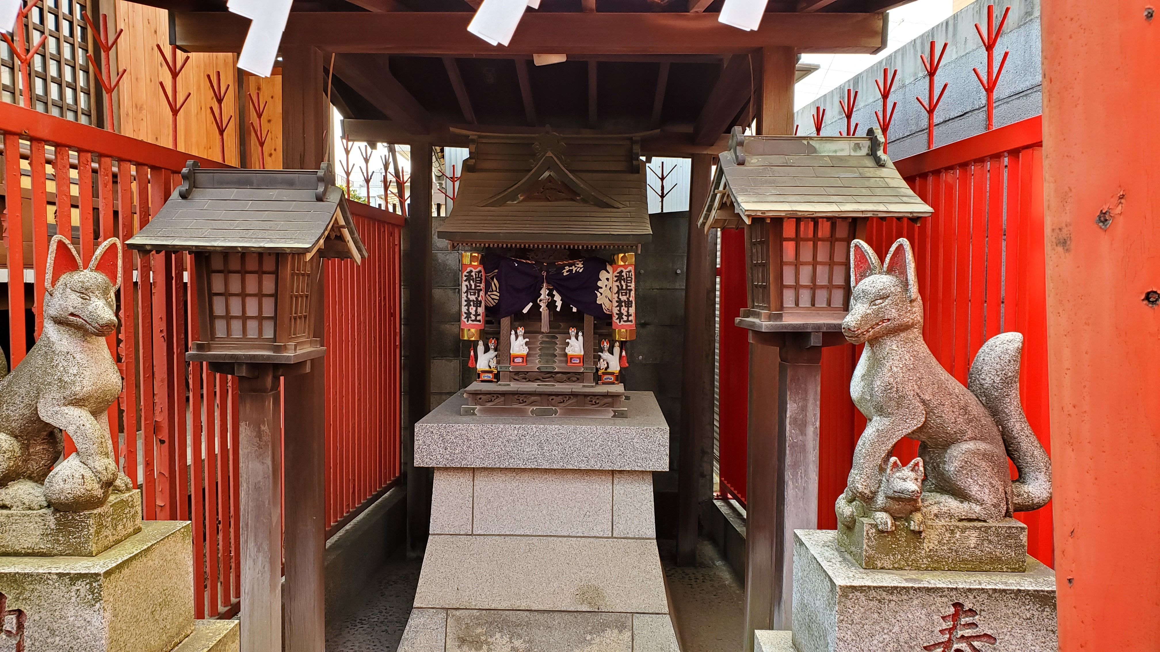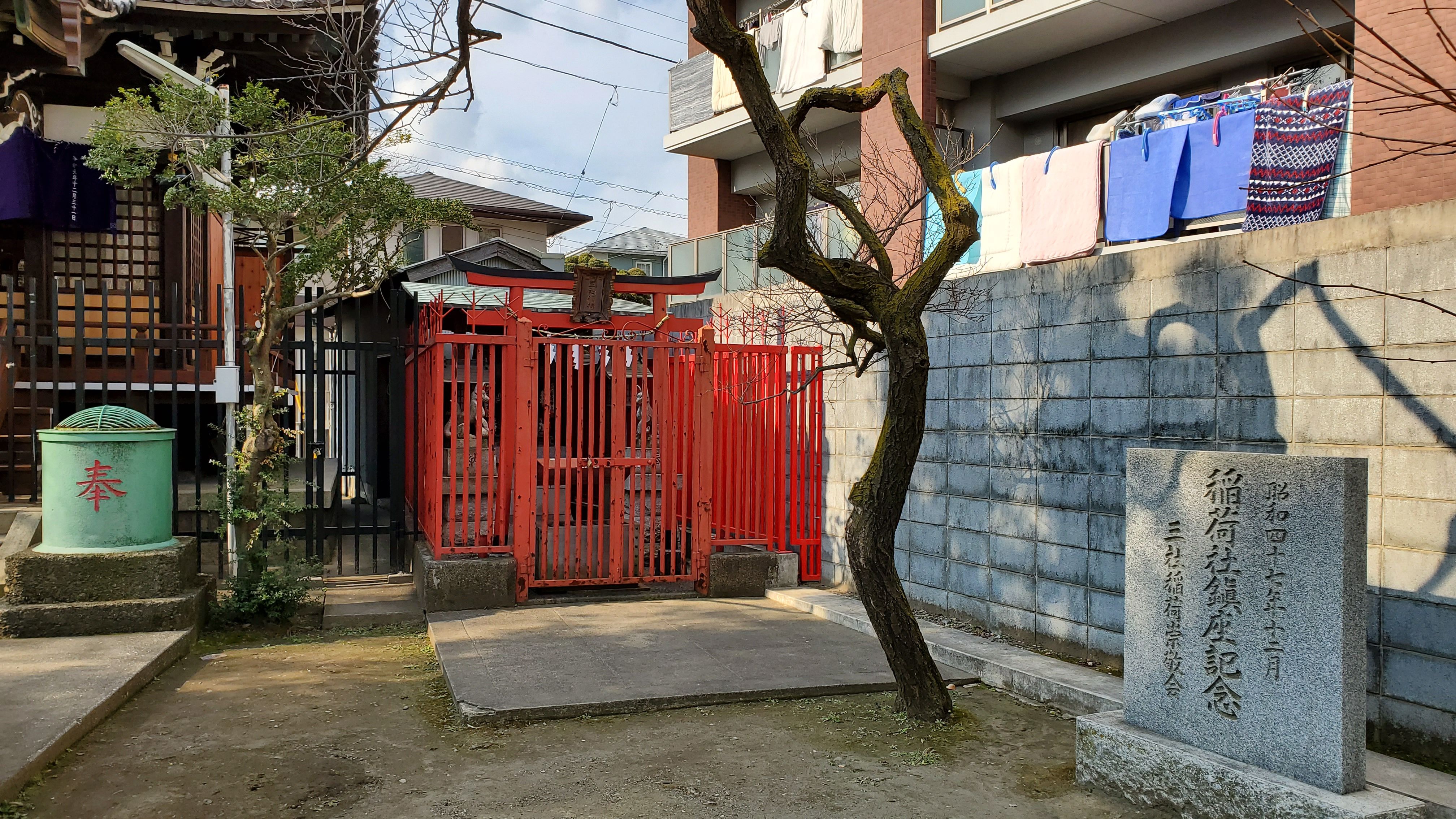 三社稲荷……鉄格子の隙間からパチリ……きっと正月や例大祭にしか直接拝見できないのでしょう。