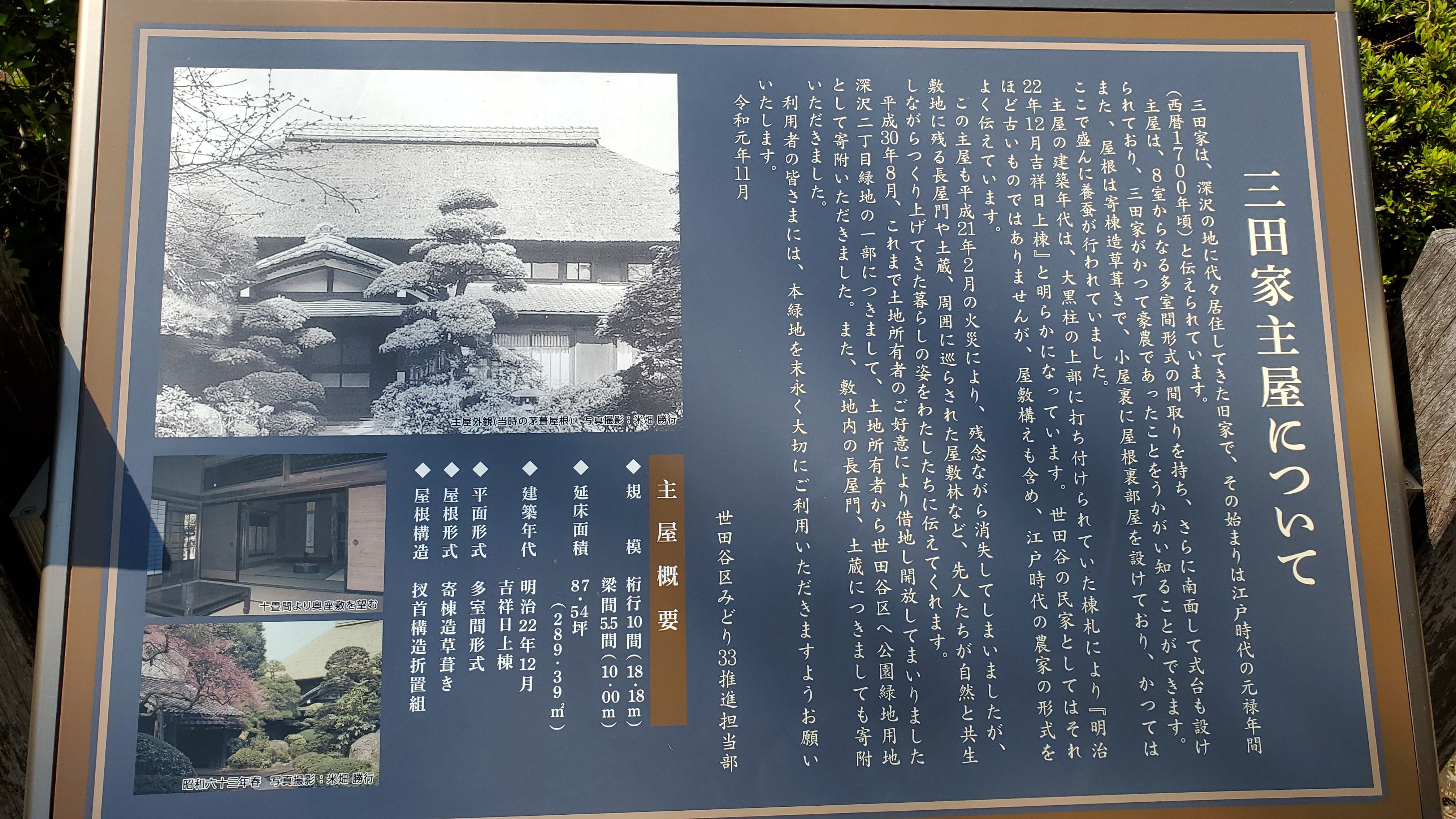 所有者の好意により借地し開放していたこの緑地……平成30年8月に長屋門・土蔵を含めて世田谷区に公園として寄付されたそうです。羨ましい限りですが税金払うのも大変でしょうから、それも生き方でしょう。