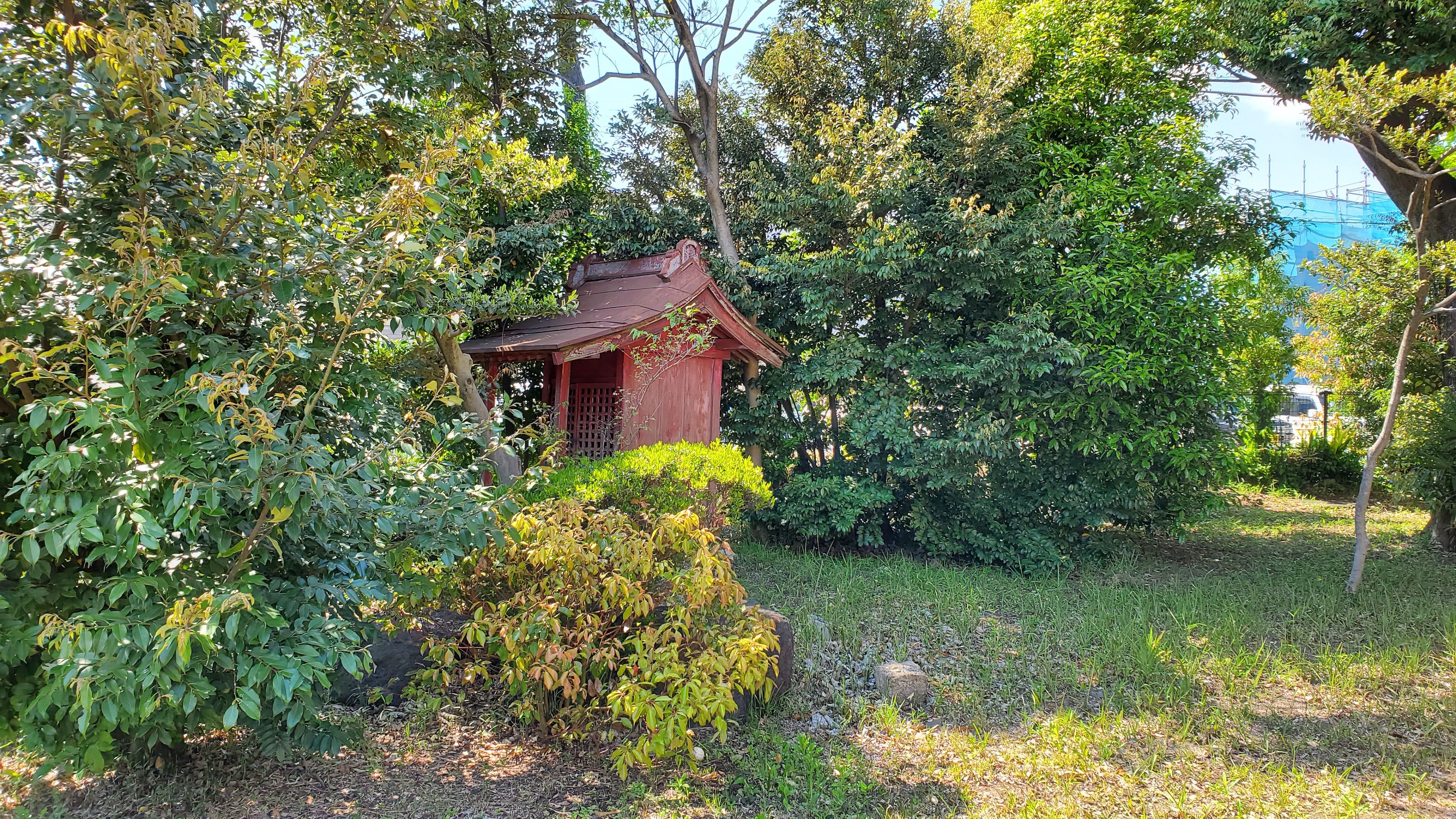 土蔵の左に……たぶんお稲荷さんでしょう。農家にはかかせませんから……