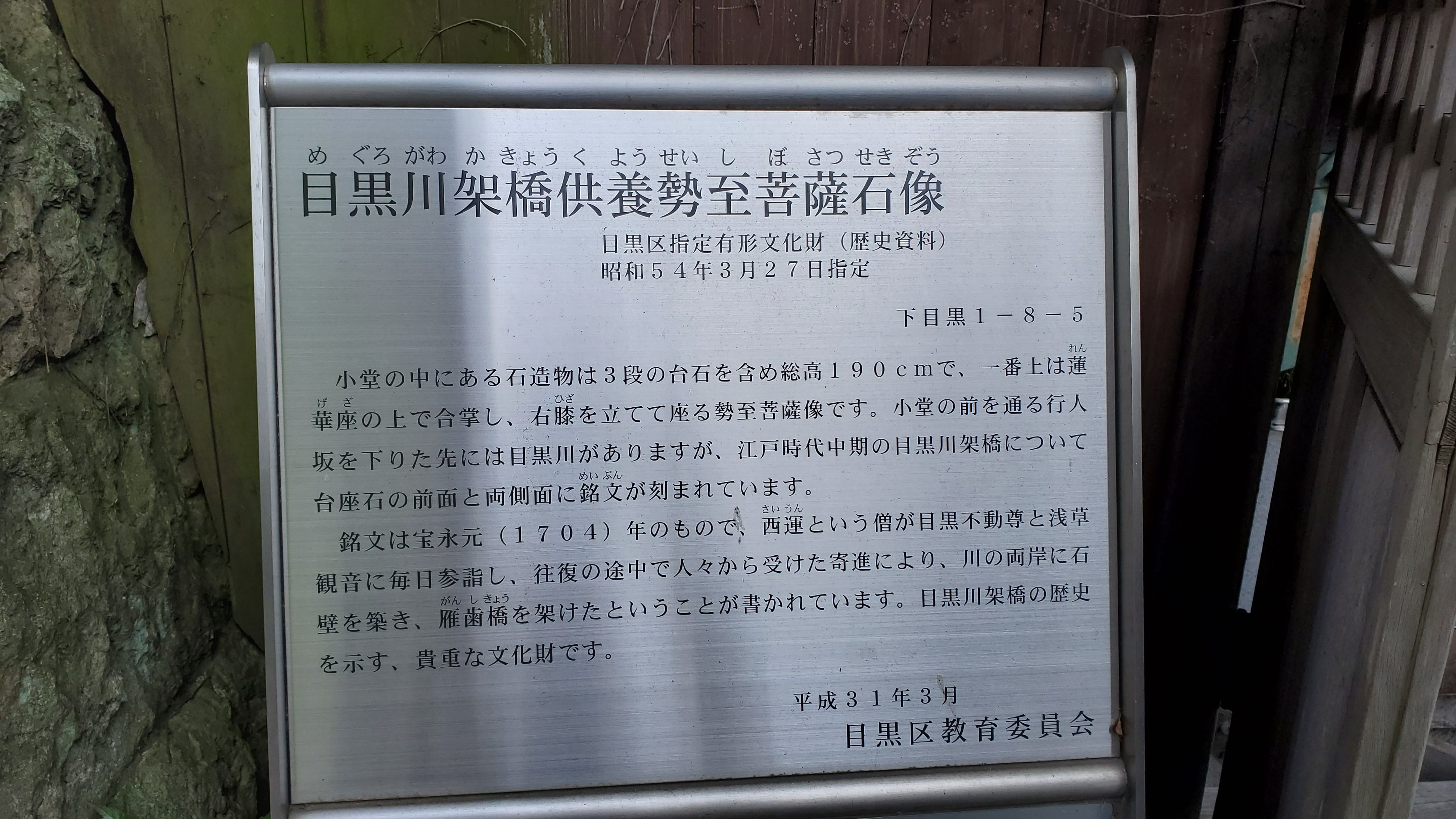 西運(さいうん)という僧が目黒不動尊と浅草観音に毎日参詣し、往来の途中で人々から受けた寄進により、目黒川の両岸に石壁を築き、雁歯橋(がんしきょう)を架けたことが、台座に書かれていると……雅叙園脇にある現在の橋名は太鼓橋。私のこの日記のトップページ先頭の写真は太鼓橋からとった雅叙園。