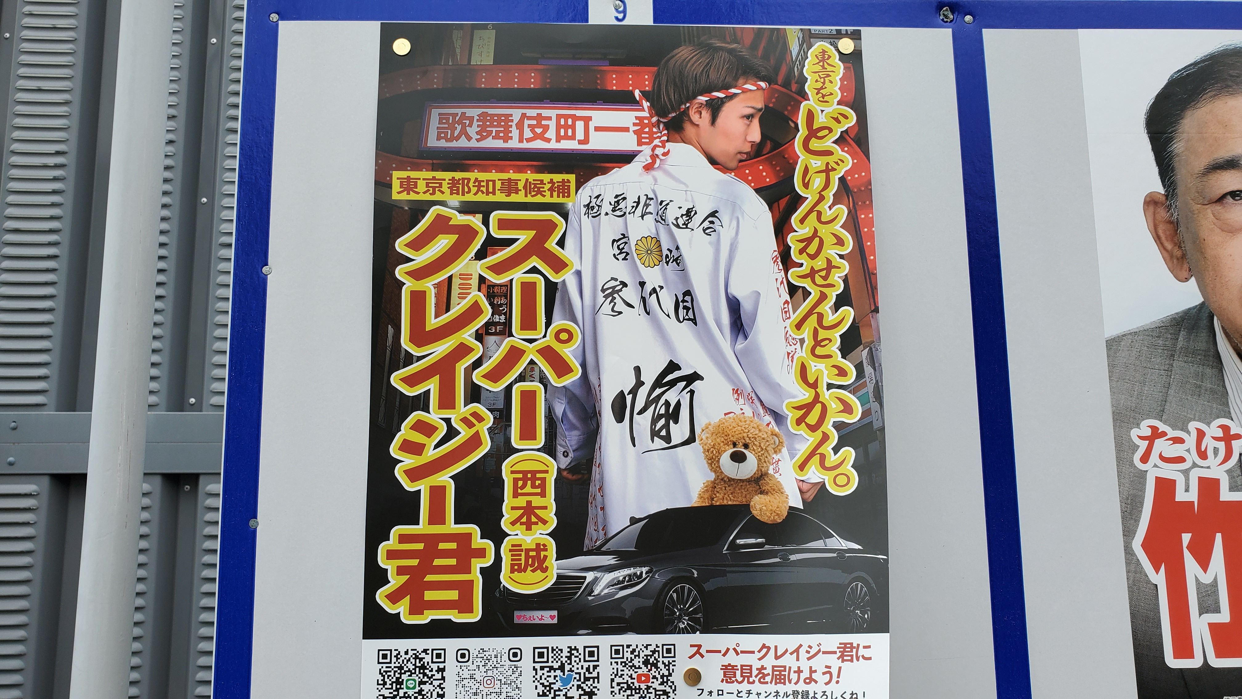 一つの掲示板に貼ってありました。背中に背負ってる「極悪非道連合」ってのは馴染めない年寄りの私だけど、政治に興味を持たず選挙にも行かない若い人たちへの投票喚起となれば意義がある事でしょう。