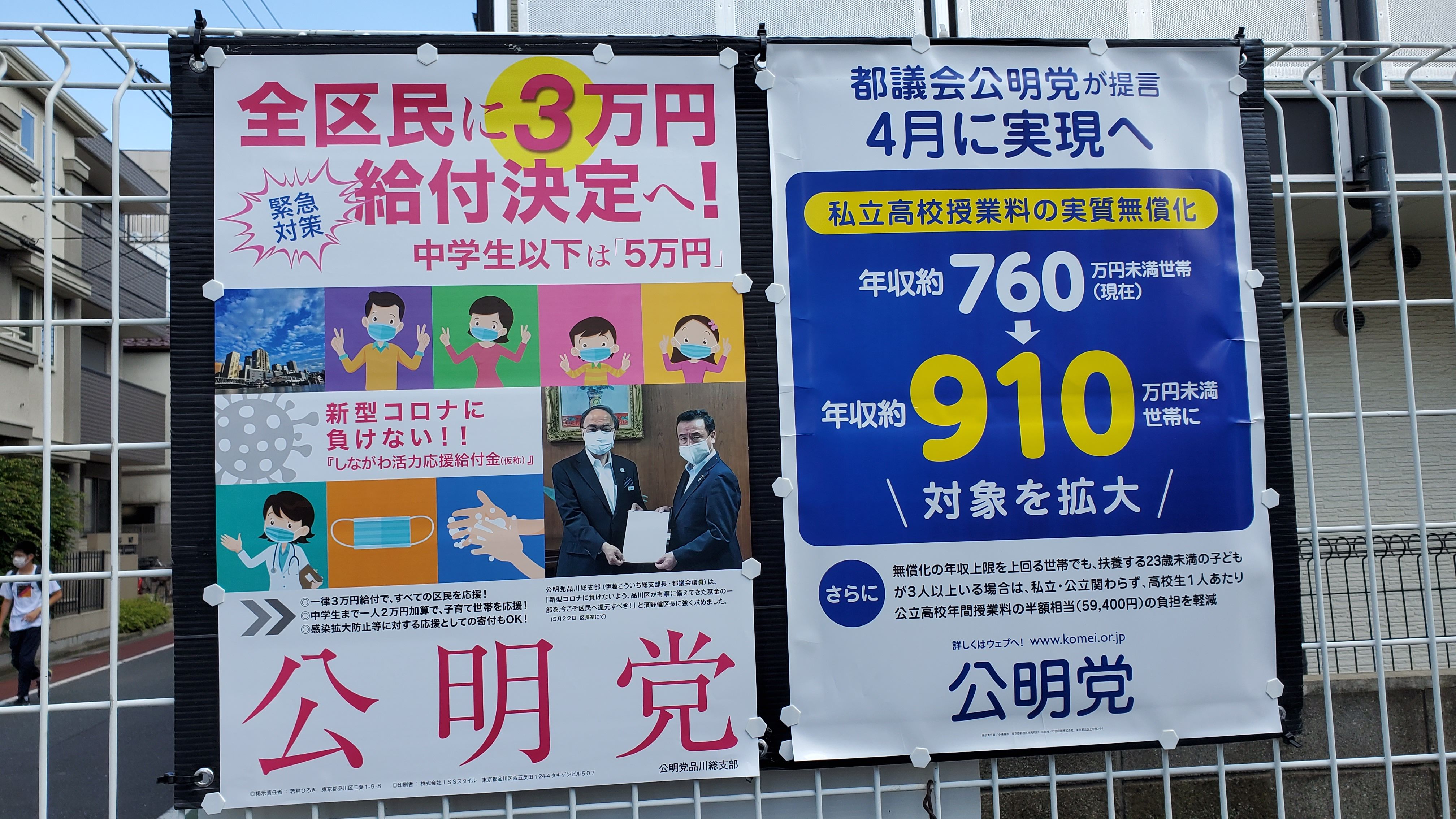 公明党は高校の授業料も軽減を提言……品川区いいな~ 財政に余裕があるのかしら?  そうそう、特別定額給付金が振り込まれたみたいです。後で通帳の記帳してみましょう。
