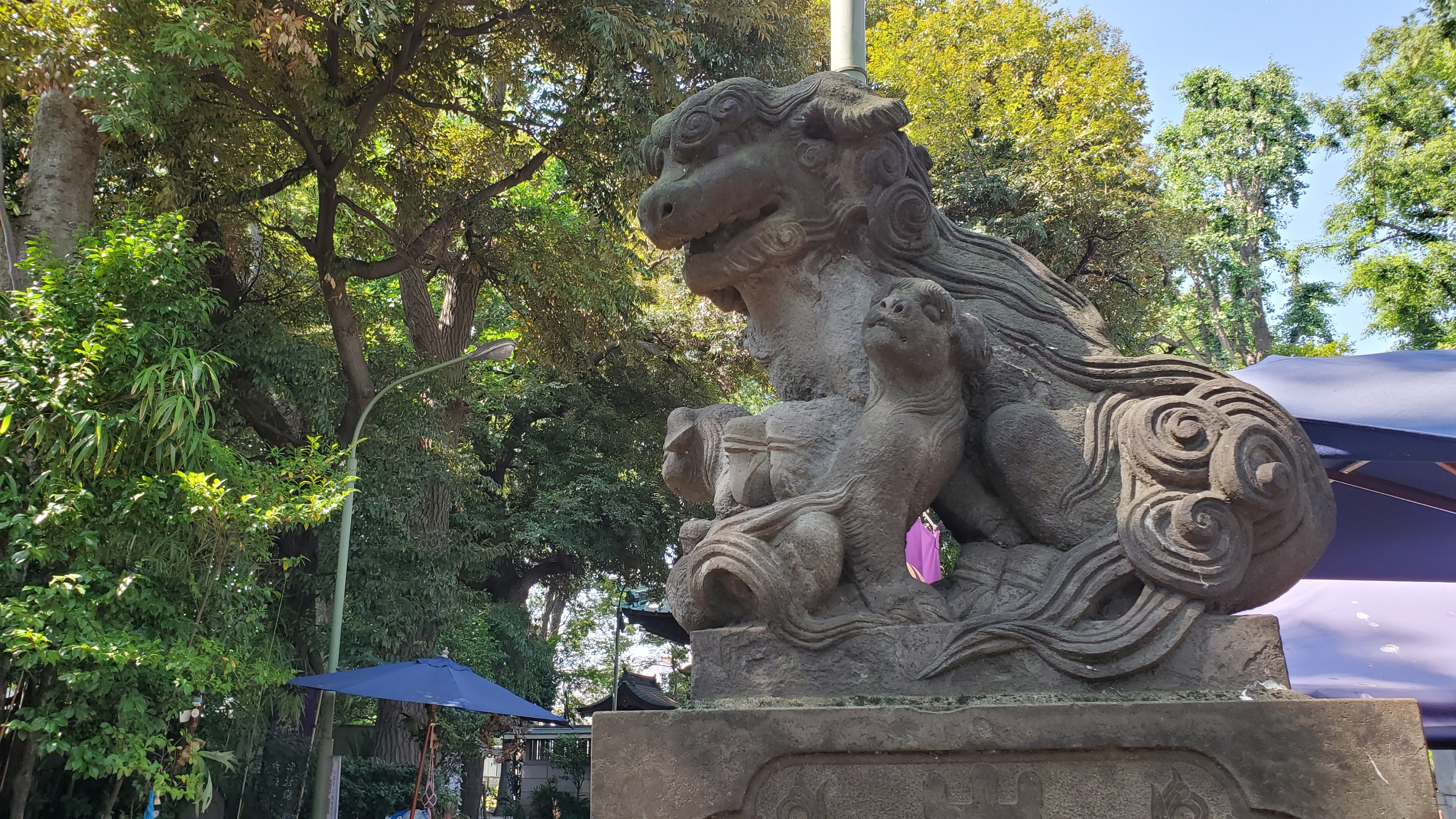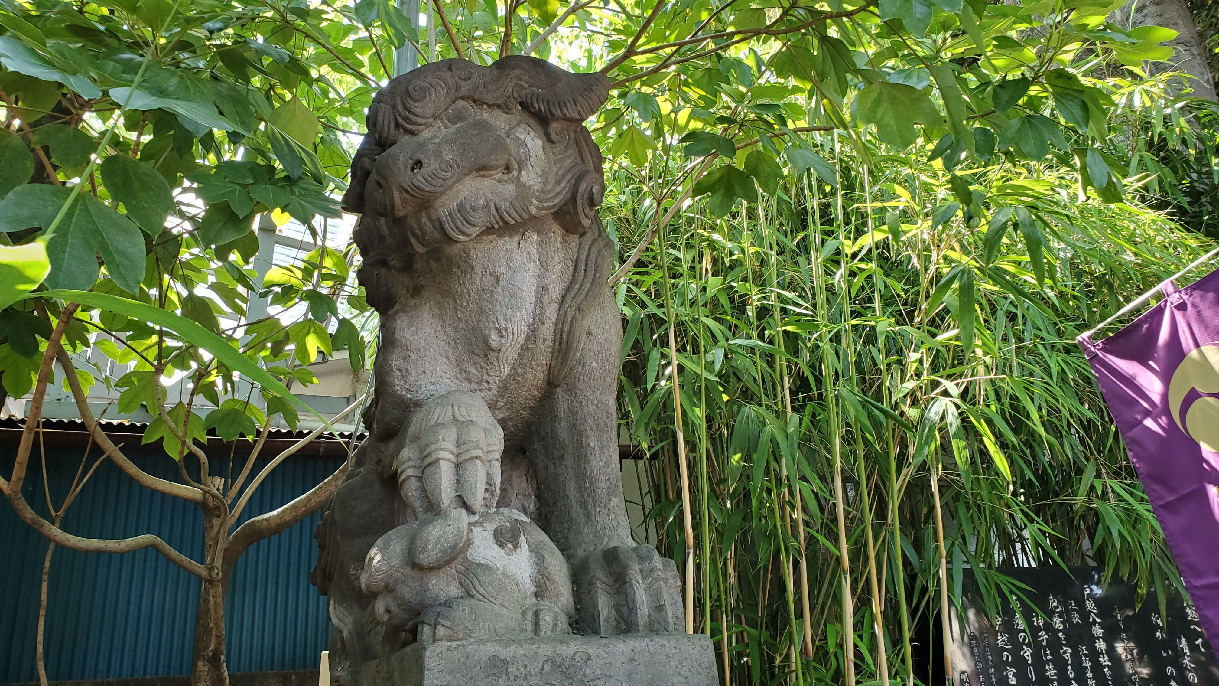 子持ちの狛犬……子持ちはたいがい阿形・口を開けているような?