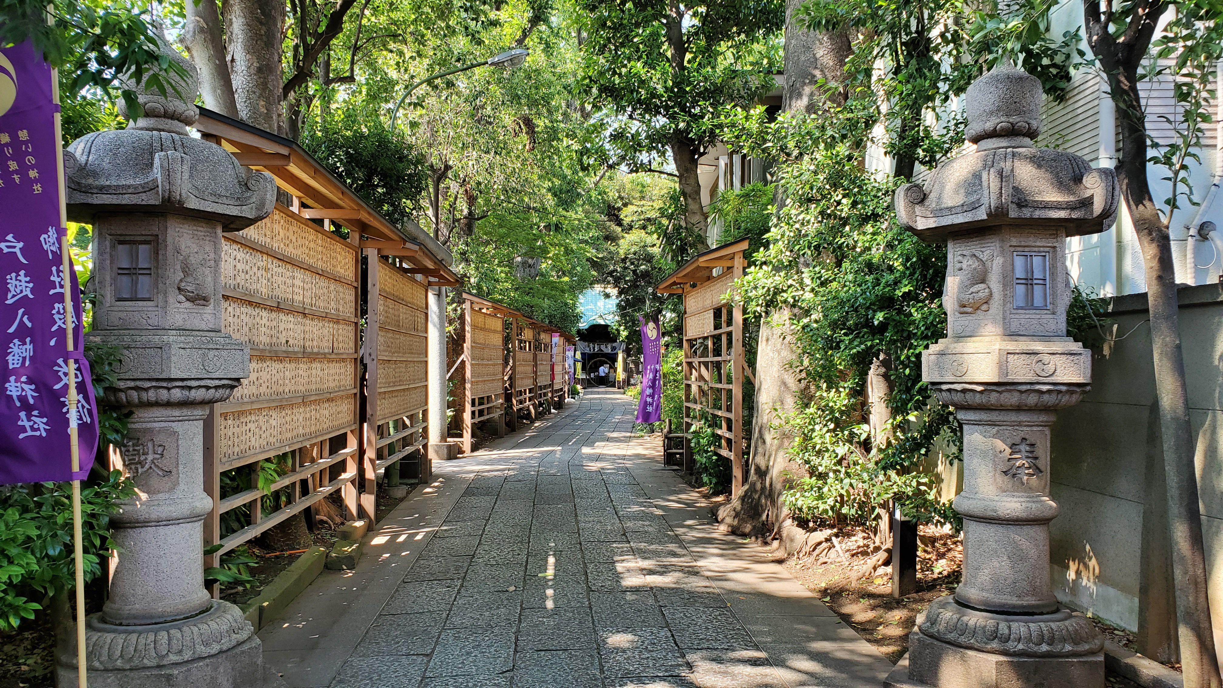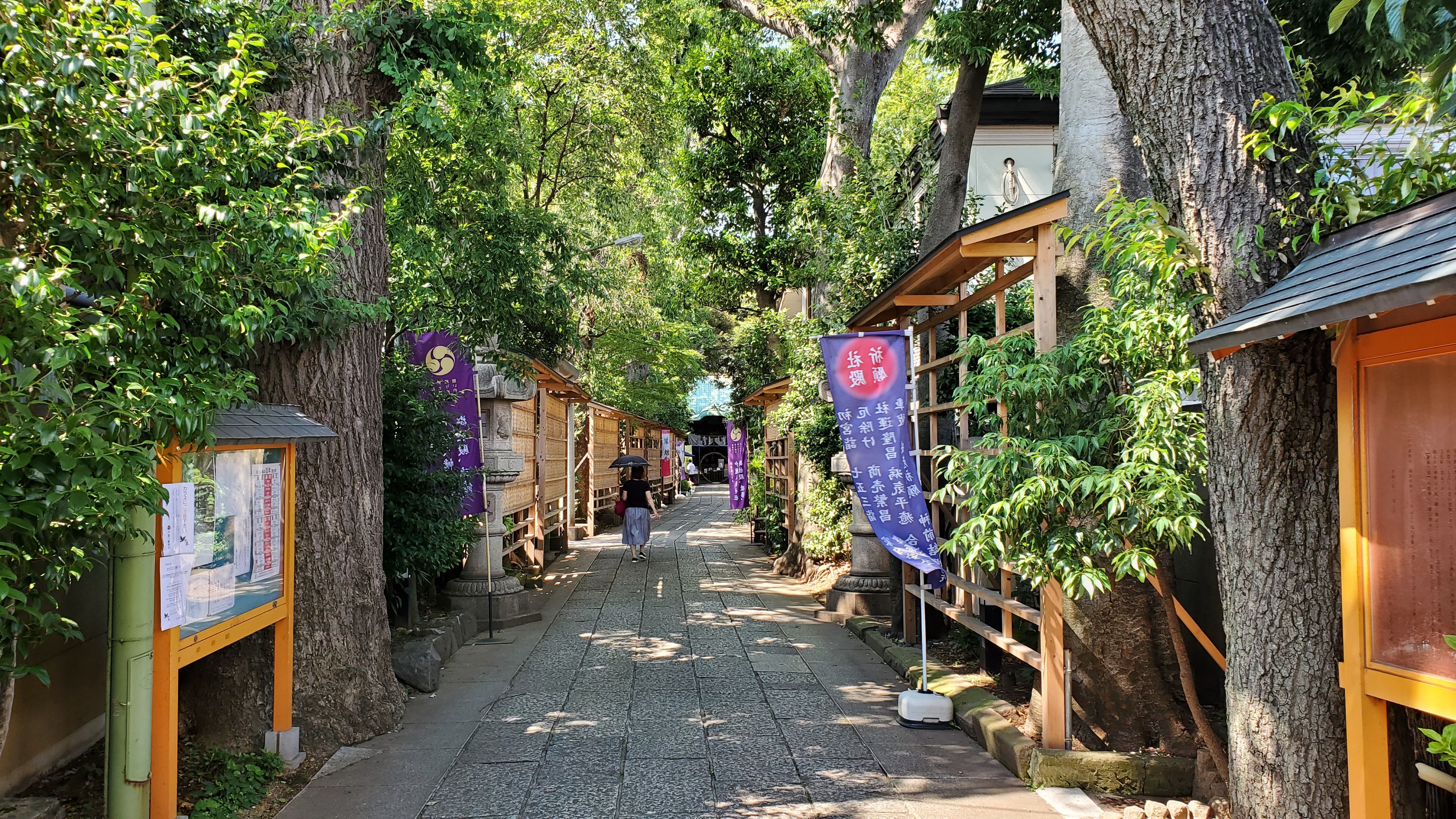 ほぼ北に向かって 奥へと続く参道……北には戸越銀座商店街がありますが、住宅街のど真ん中に鎮座しています。外からの騒音は一切なし。