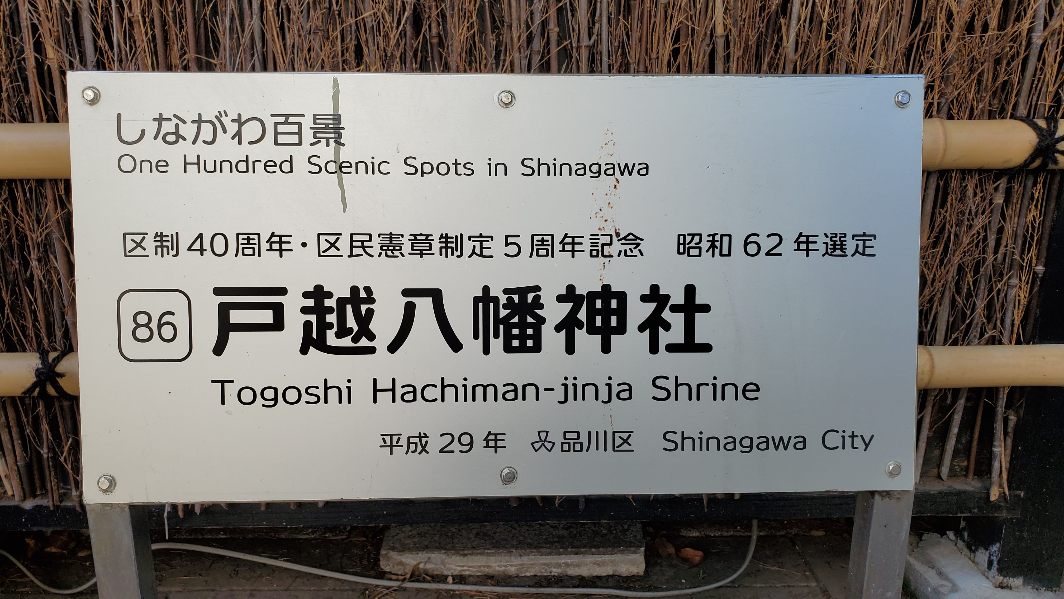 戸越八幡神社……こちらの起源となった現・一本杉元八幡神社の成就庵が戸越の地名の由来なんだと。由来の碑もあったけど、後編で……。ちなみに、八幡山行慶寺の開山念誉上人によって現地に八幡宮が建立されたのは文禄元年(1593年)とのこと。