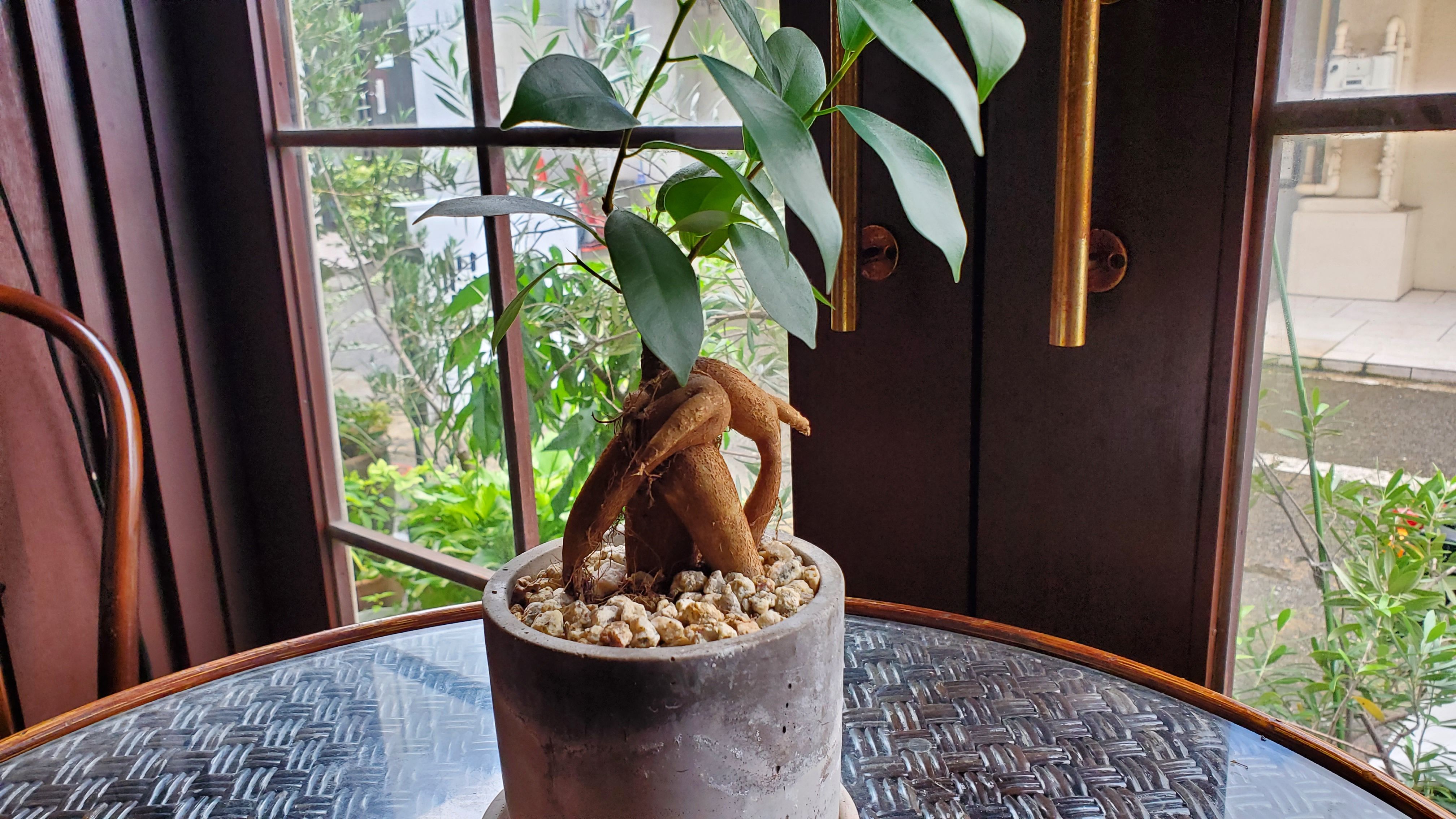 根っこなのか? 幹なのか? 暇を売る店のテーブルに……雨の日が多いので西小山へはなかなか行かれず、今朝もこちらでお世話になりました。