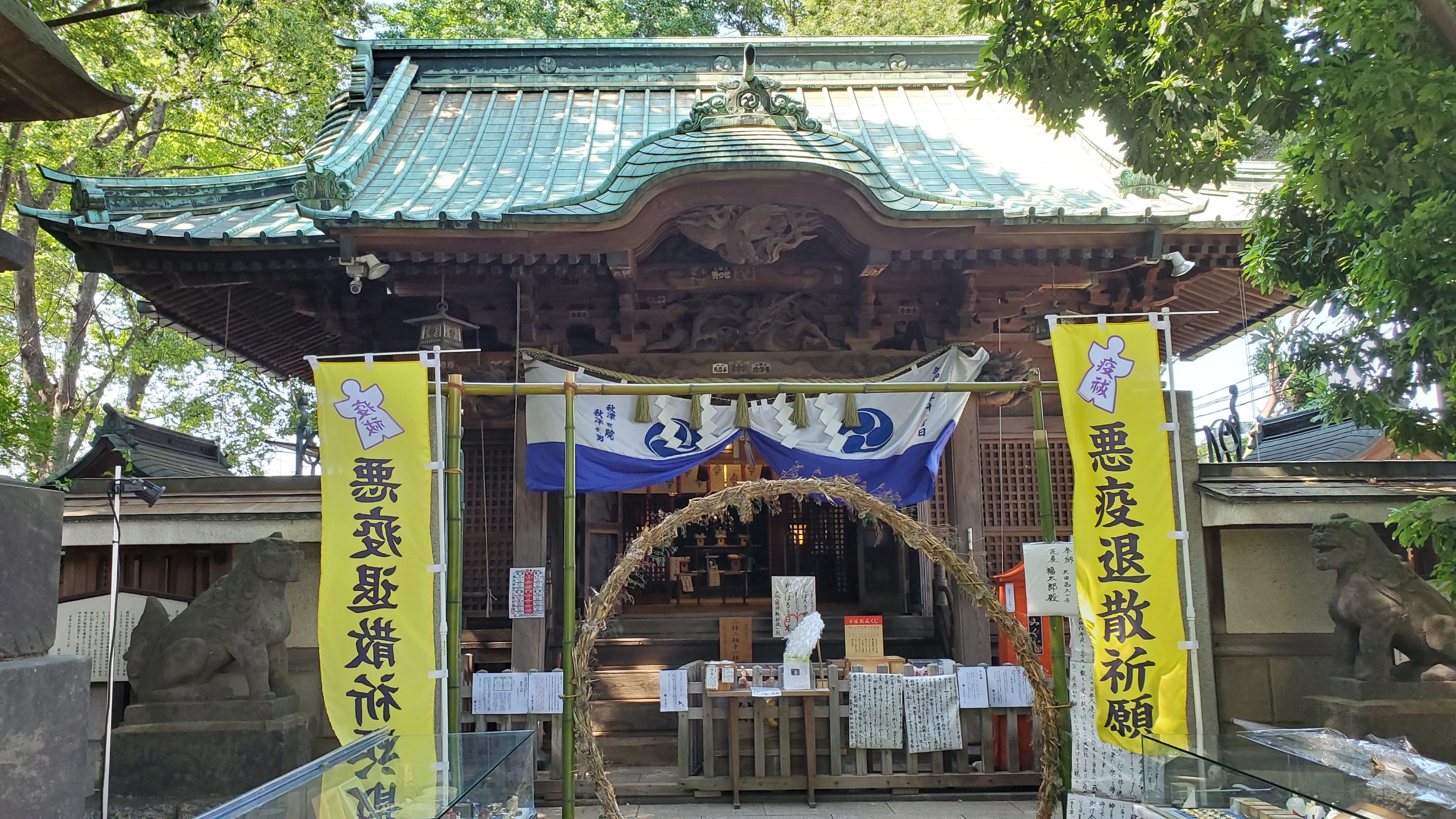 夏のこの時期は昔から疫病が流行ることが多かったけど、 悪疫退散祈願の今年の黄色い幟が象徴するのは新型コロナウイルス。正に時は「夏越の祓」、 「年越しの祓」と合わせて「大祓」と称すそうだが、 「茅の輪くぐり」も登場済。厄払いと無病息災を祈り、左・右・左と8の字に3周くぐり抜けるのが一般的らしい。それでも時節柄か行列や三密を防止するために2周を推奨する神社もあるようです。